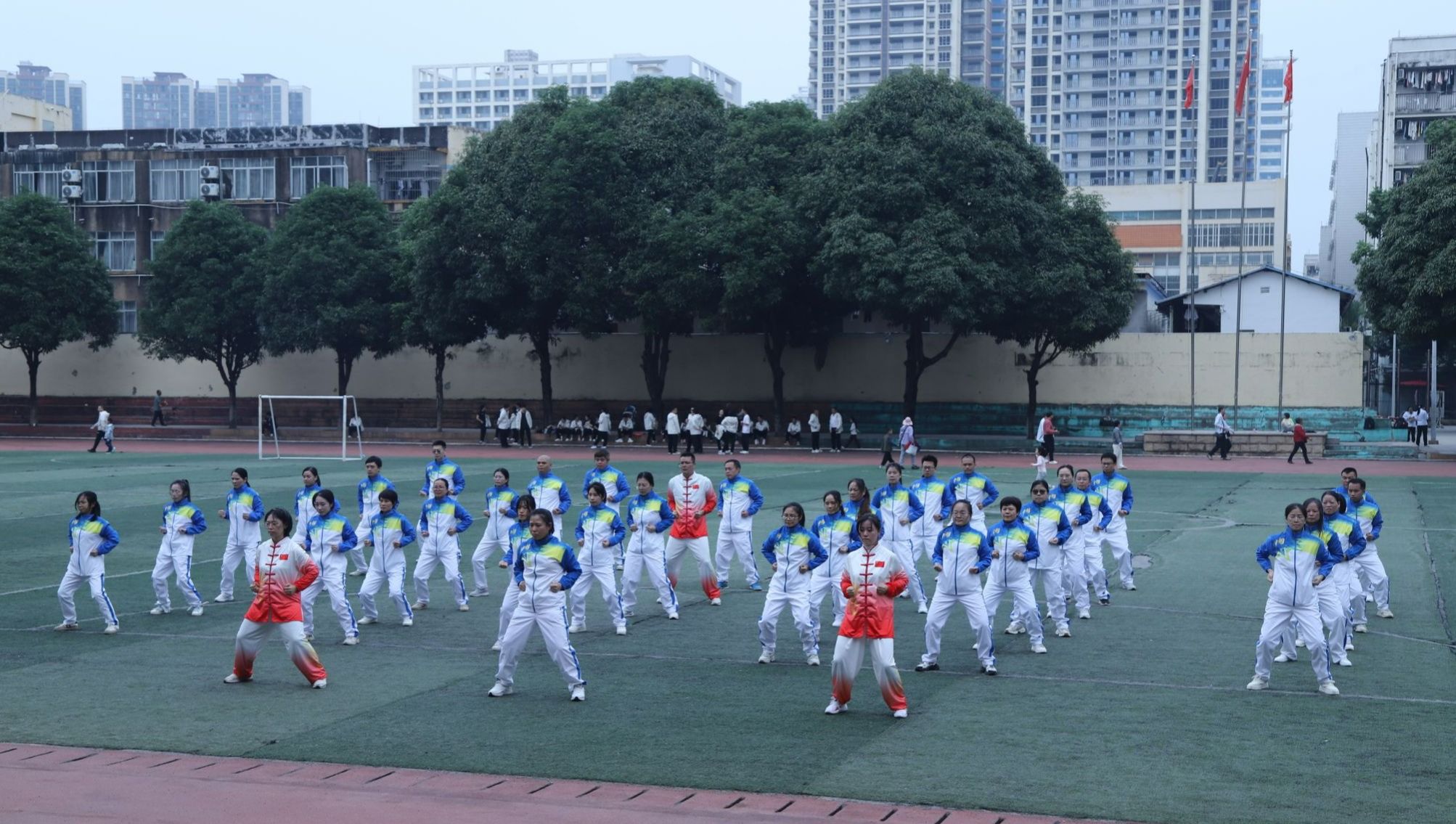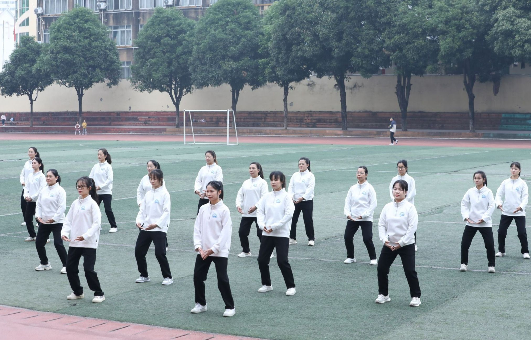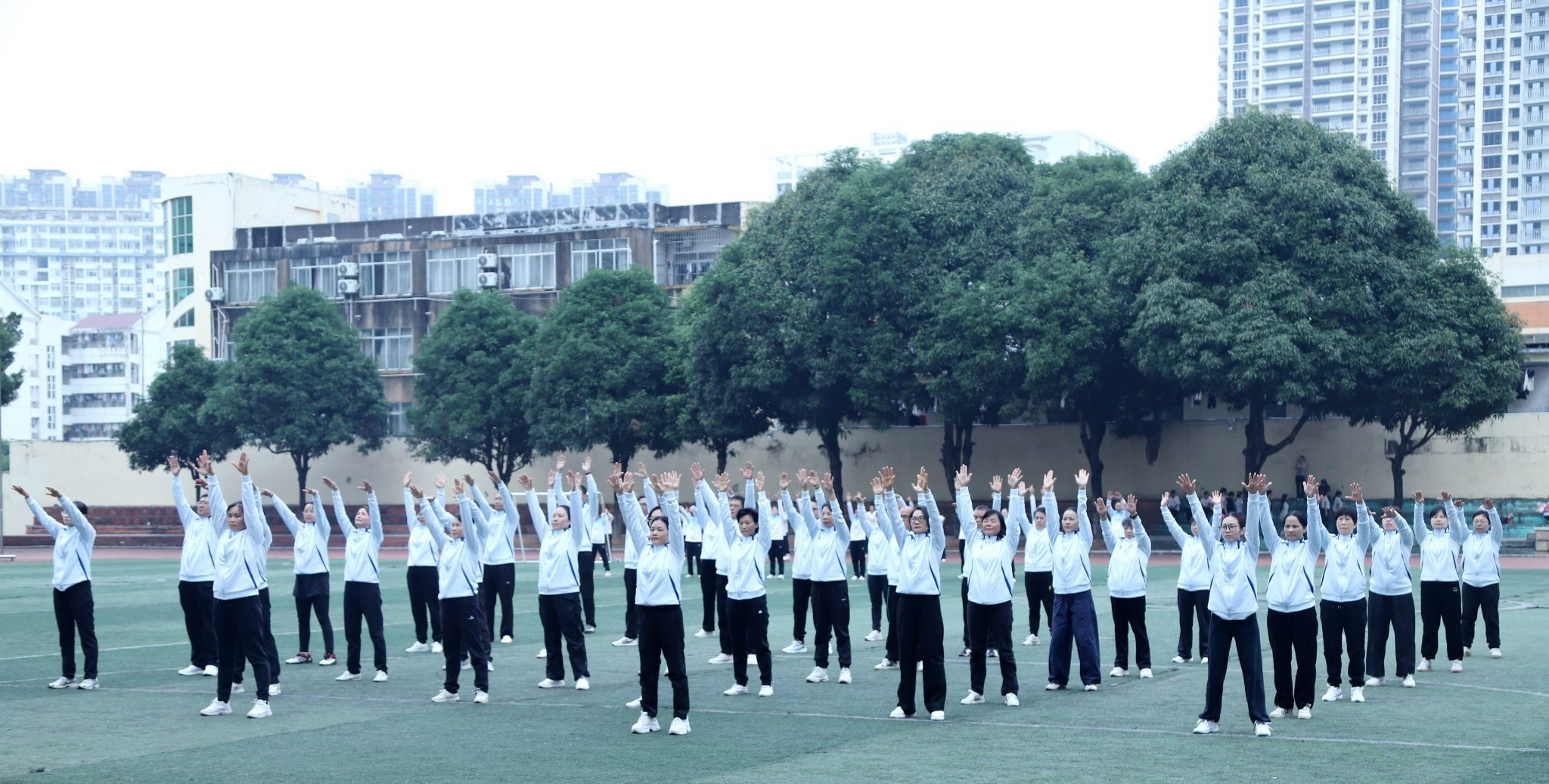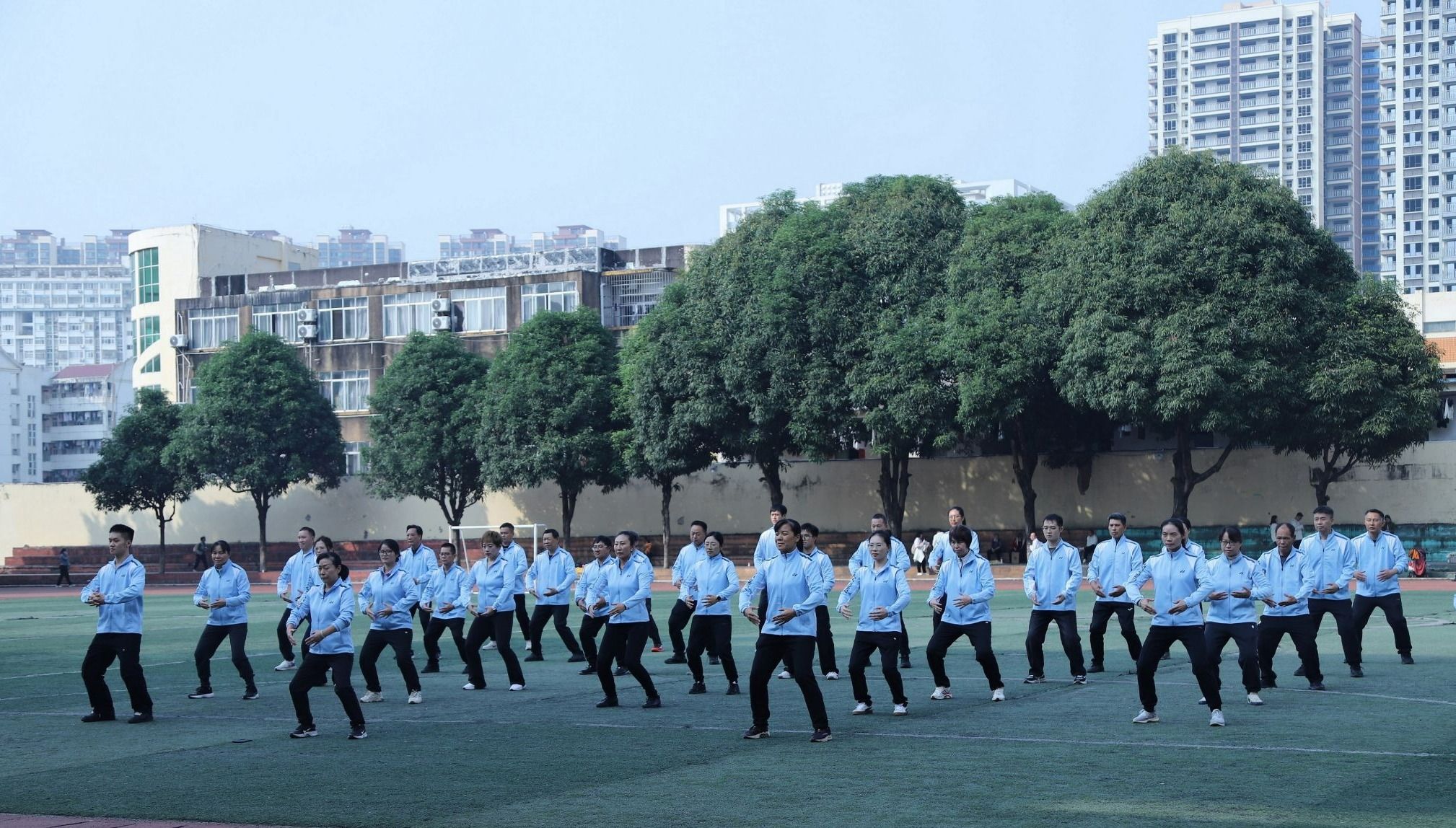 12月7日,南宁师范大学教职工健身气功八段锦比赛在明秀校区足球场顺利举行。本次比赛由校工会组织,35个分工会近1200余名教职工报名参加。