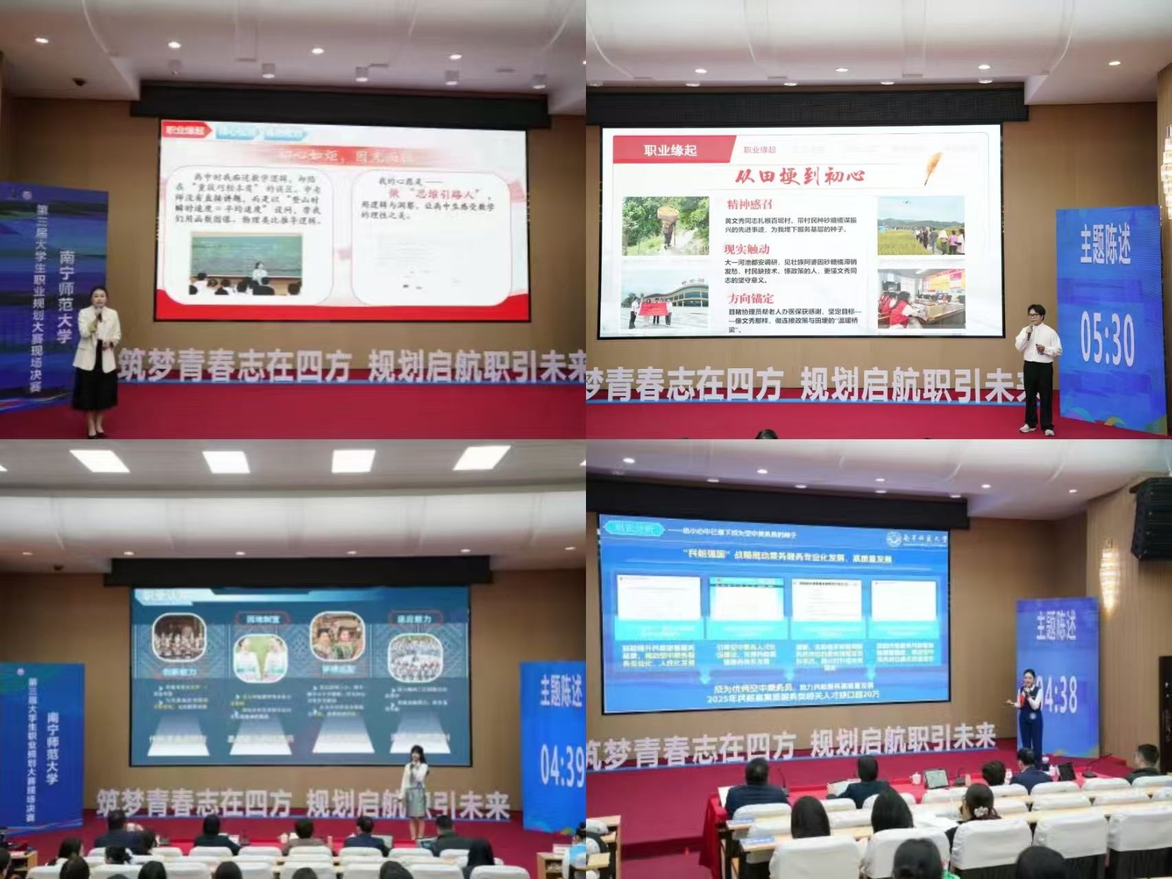 大赛设置了成长赛道和就业赛道,就业赛道聚焦选手职业规划的完整性与成长性,设置主题陈述、评委审评两大环节;就业赛道侧重职业适配度与实践能力,采用主题陈述、综合面试相结合的考核形式。比赛现场,选手们凭借扎实的专业积淀、清晰的职业定位与从容的临场表现充分展现青春风采,以精彩的展示与答辩赢得评委肯定,充分彰显了我校学子积极向上的精神风貌与明确的职业发展追求。