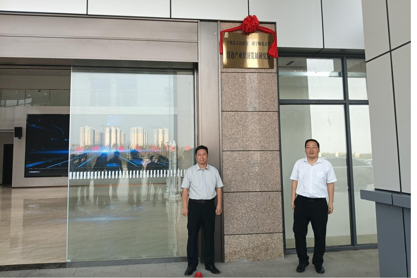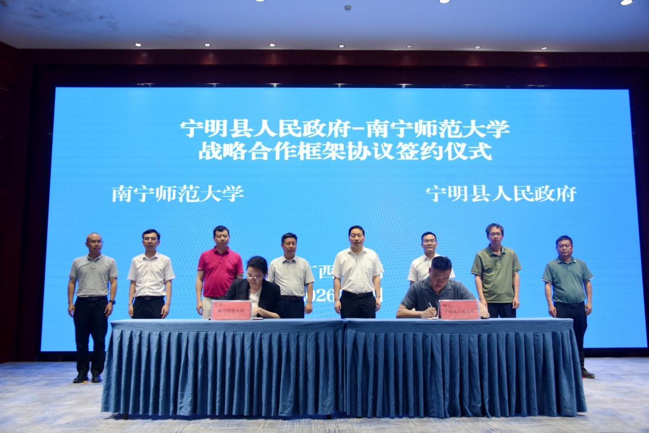 在宁明县“人工智能+低空经济”创新中心举行的沿边产业经济发展研究院揭牌仪式上,张松涛与孙金水共同为“沿边产业经济发展研究院”揭牌,标志着聚焦沿边开放、服务地方发展的新型智库正式成立。同时,双方在花山温泉国际大酒店举行了南宁师范大学与宁明县人民政府战略合作框架协议签约仪式。根据协议,双方将立足宁明沿边特色与发展需求,我校将充分发挥学科、科研、人才与智库优势,重点在产业发展与科技创新、科研平台与项目申报、人才培养与能力建设、应用场景开发与成果转化等方面开展务实合作,推动教育链、人才链、产业链、创新链深度融合,共同打造校地协同服务沿边产业发展的示范样板。