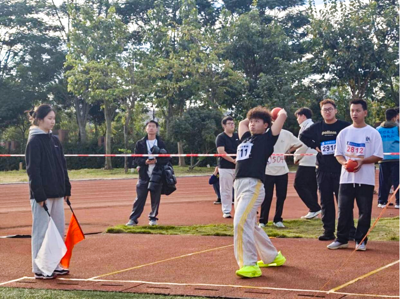 11月21日上午,我校运动会甲组男子双手前掷实心球决赛在武鸣校区松园田径场顺利落幕。