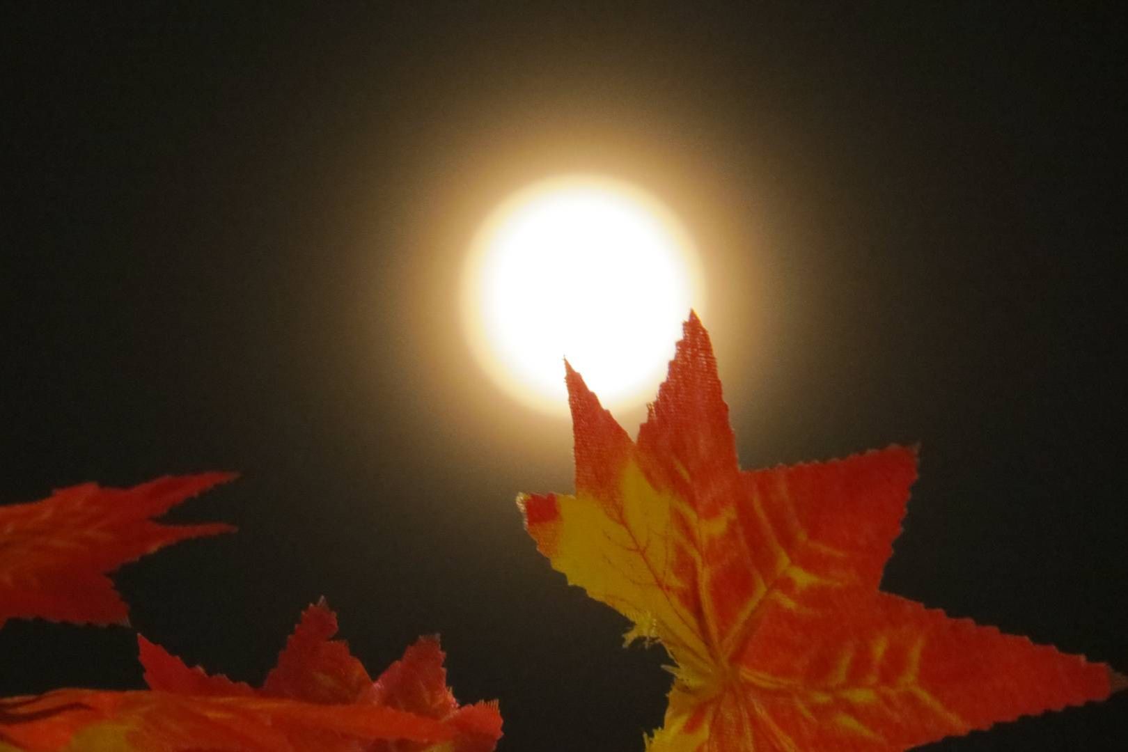 夜,如一块巨大的黑色绸缎,悄然无息地笼罩了整个世界。一轮皎洁的满月,宛如一颗璀璨的明珠,悬挂在深邃的夜空之中,洒下银白而柔和的光辉。那几片枫叶,像是被月光唤醒的精灵,红得夺目,黄得灿烂,在微风中轻轻舞动,仿佛在诉说着秋天的故事。月光洒在枫叶上,为它们镀上了一层神秘的银边,更增添了几分诗意与浪漫。