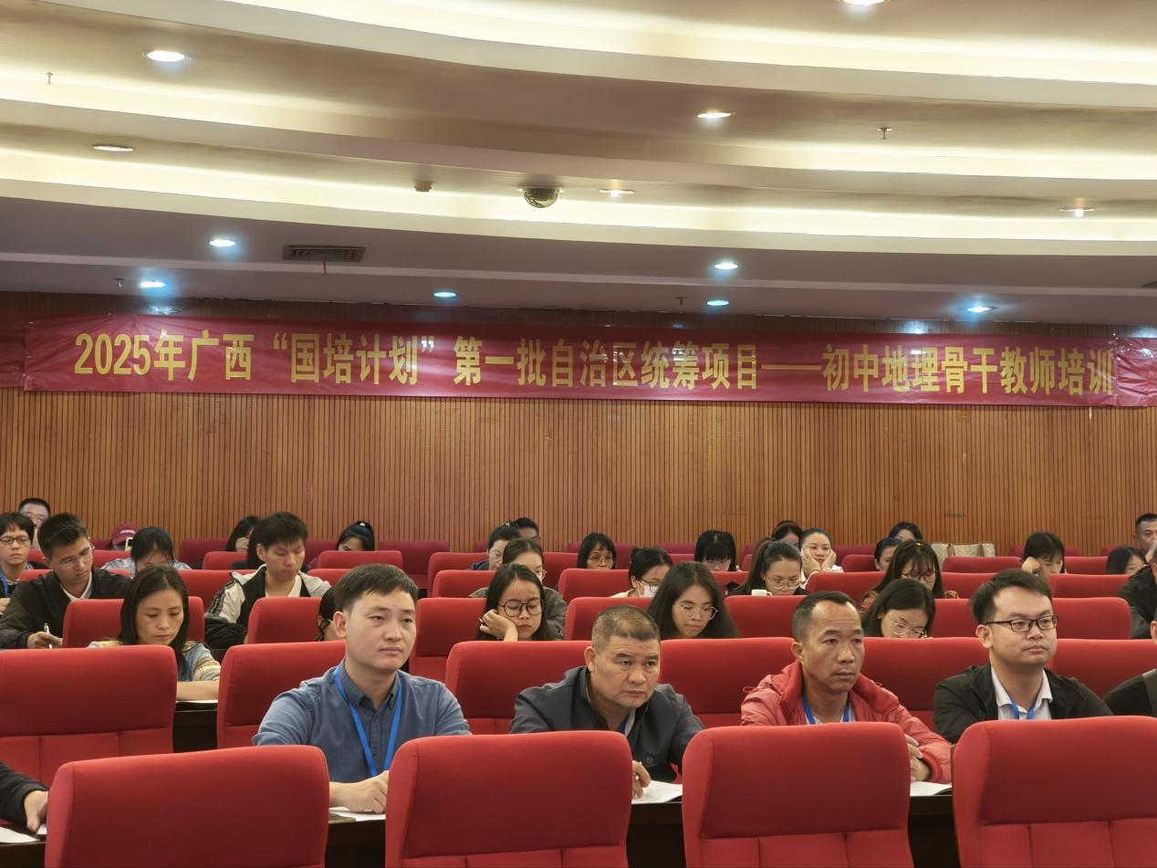 10月30日,由我校承办的2025广西“国培计划”第一批自治区统筹项目——初中地理骨干教师培训在南宁师范大学明秀校区图书馆三楼报告厅顺利开班,我校地理科学与规划学院党委书记严志强教授、刘立昌副教授,地理科学系副主任韦晨、汪洋博士以及来自广西全区各市的120名初中地理学科、骨干教师参加开班仪式。