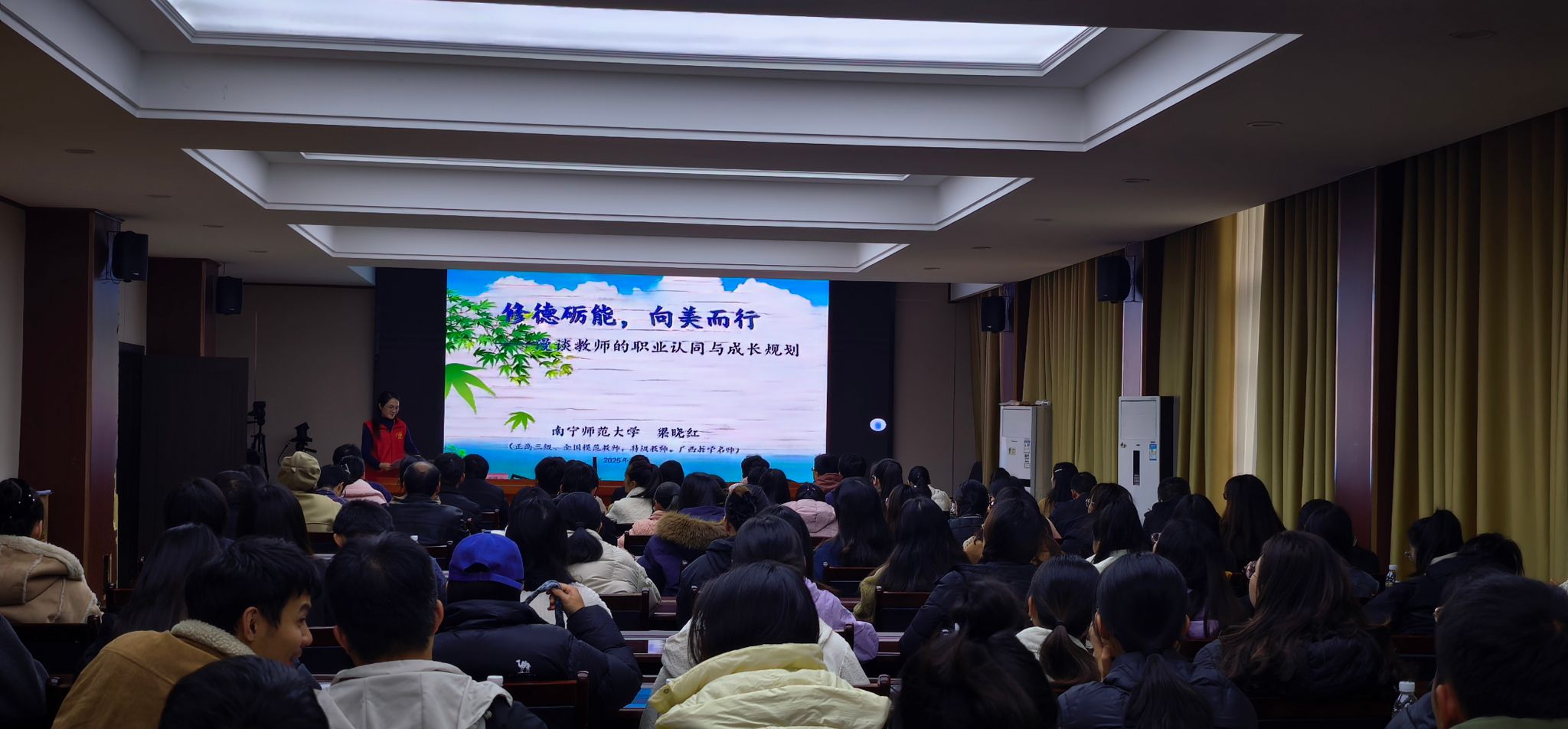 梁晓红教授以“修德励能,向美而行”为主题,通过分享其成为全国模范教师的历程,指导青年教师做好成长规划,进一步强化对教师的职业认同。