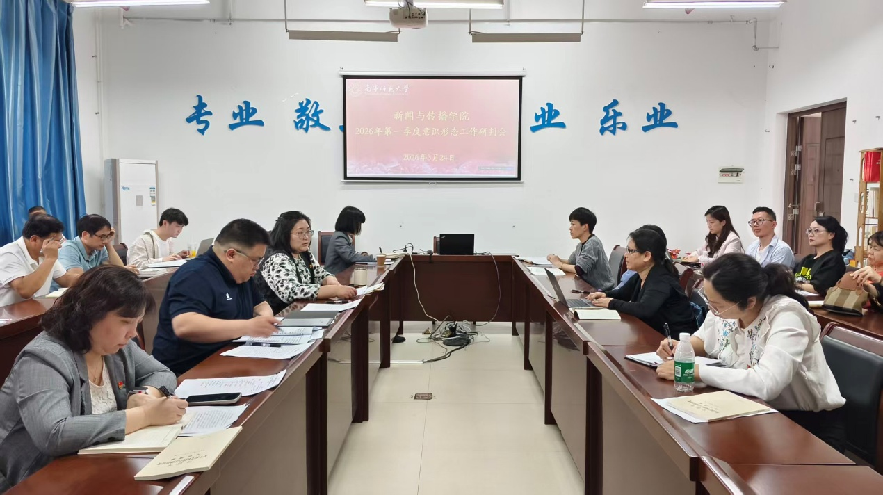 3月24日下午,新闻与传播学院于理综楼304会议室召开2026年第一季度意识形态工作研判会,会议由学院党委书记聂卉主持。