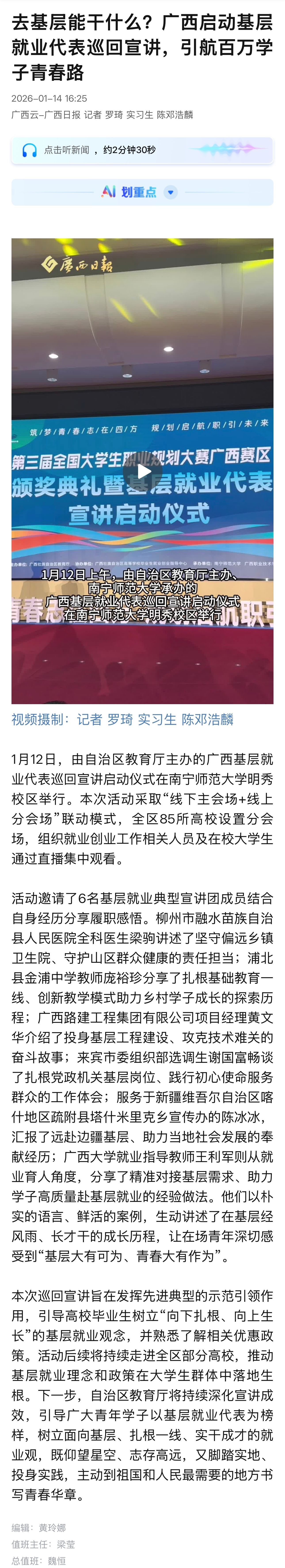 【人民网】广西基层就业代表巡...
