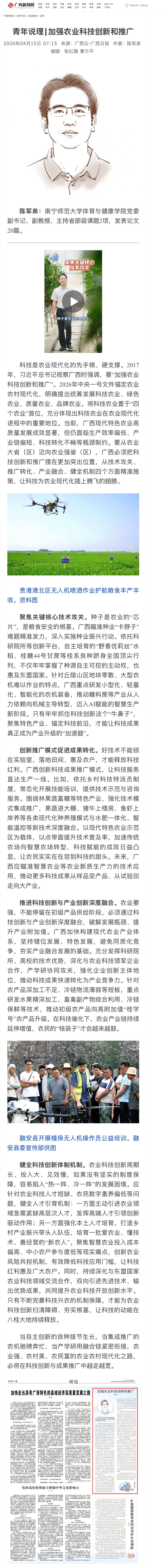 【广西日报】加强农业科技创新和推广
