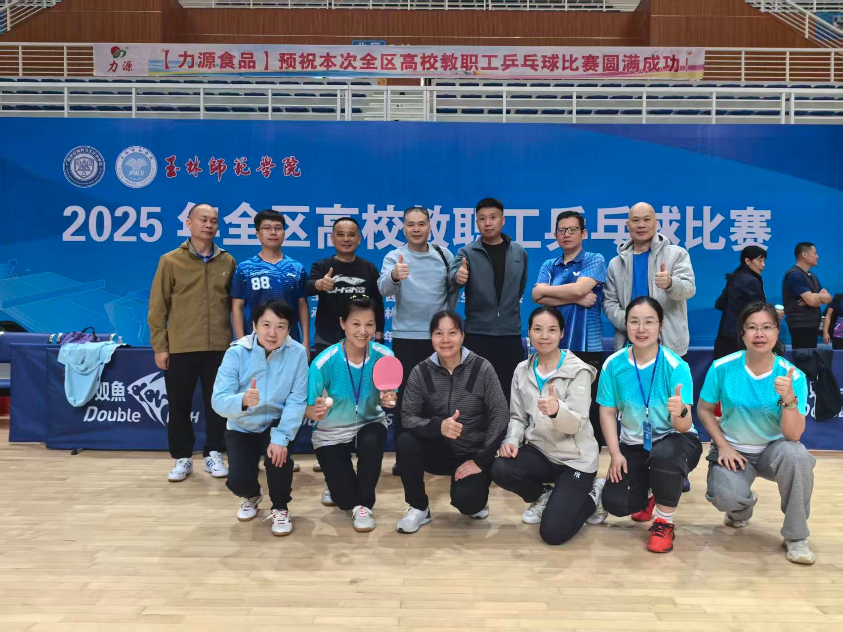 激情挥拍,银球飞舞。近日,为期三天的2025年全区教高校教职工乒乓球比赛在玉林师范学院体育馆落下帷幕。本次比赛汇集了来自全区各市、高校及区直单位的数百名乒乓球好手,我校校长组和教工组代表参加了此次比赛。赛场上既有紧张激烈的巅峰对决,也不乏温馨感人的团队情谊,赛出了南宁师大人的精神和风采。此次比赛,不仅是一场竞技的较量,更是一次团队的熔炼和精神的展示,期待未来的赛场上,能继续看到我校教职工们挥拍奋进的飒爽英姿。