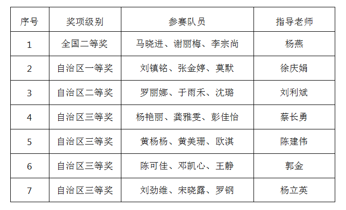 近日,由教育部高教司和中国工业与应用数学学会举办的全国大学生数学建模竞赛(A类)成绩揭晓。我校学子喜获7项奖项,其中荣获全国二等奖1项,自治区一等奖1项、二等奖1项、三等奖4项。