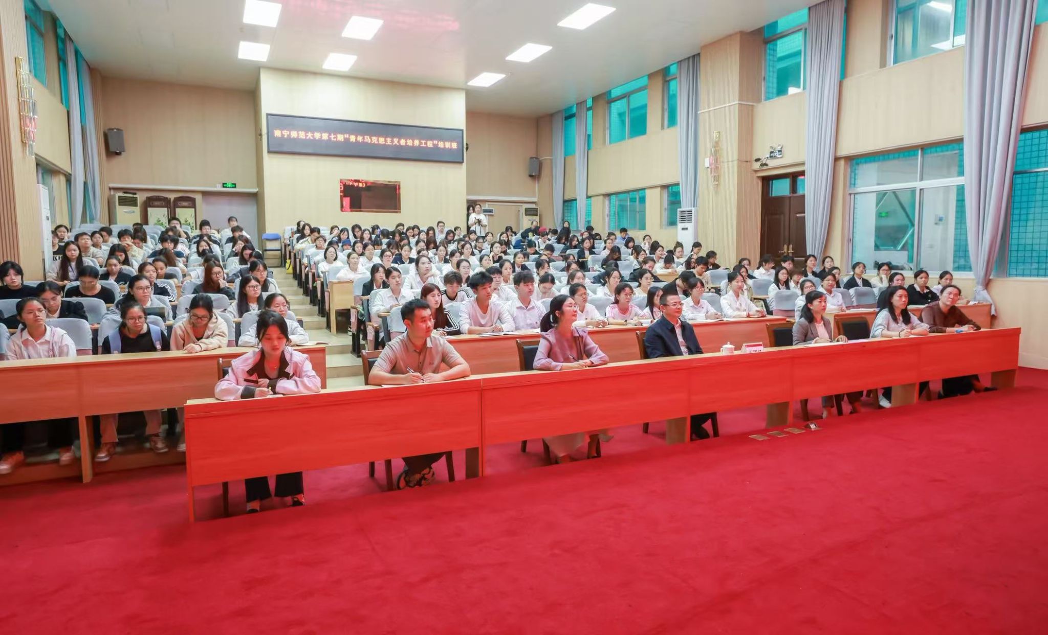 为深入学习习近平总书记关于铸牢中华民族共同体意识的重要论述,11月10日下午,我校邀请自治区人民政府督学、老教授协会会长、原广西师范学院党委书记于瑮教授为青年学生作“深学笃行党的二十届四中全会精神 扎实推进中华民族共同体建设”专题报告会,第七期“青年马克思主义者培养工程培训班”学员、各学院学生代表200余人参加。报告会由学校副校长王国红主持。