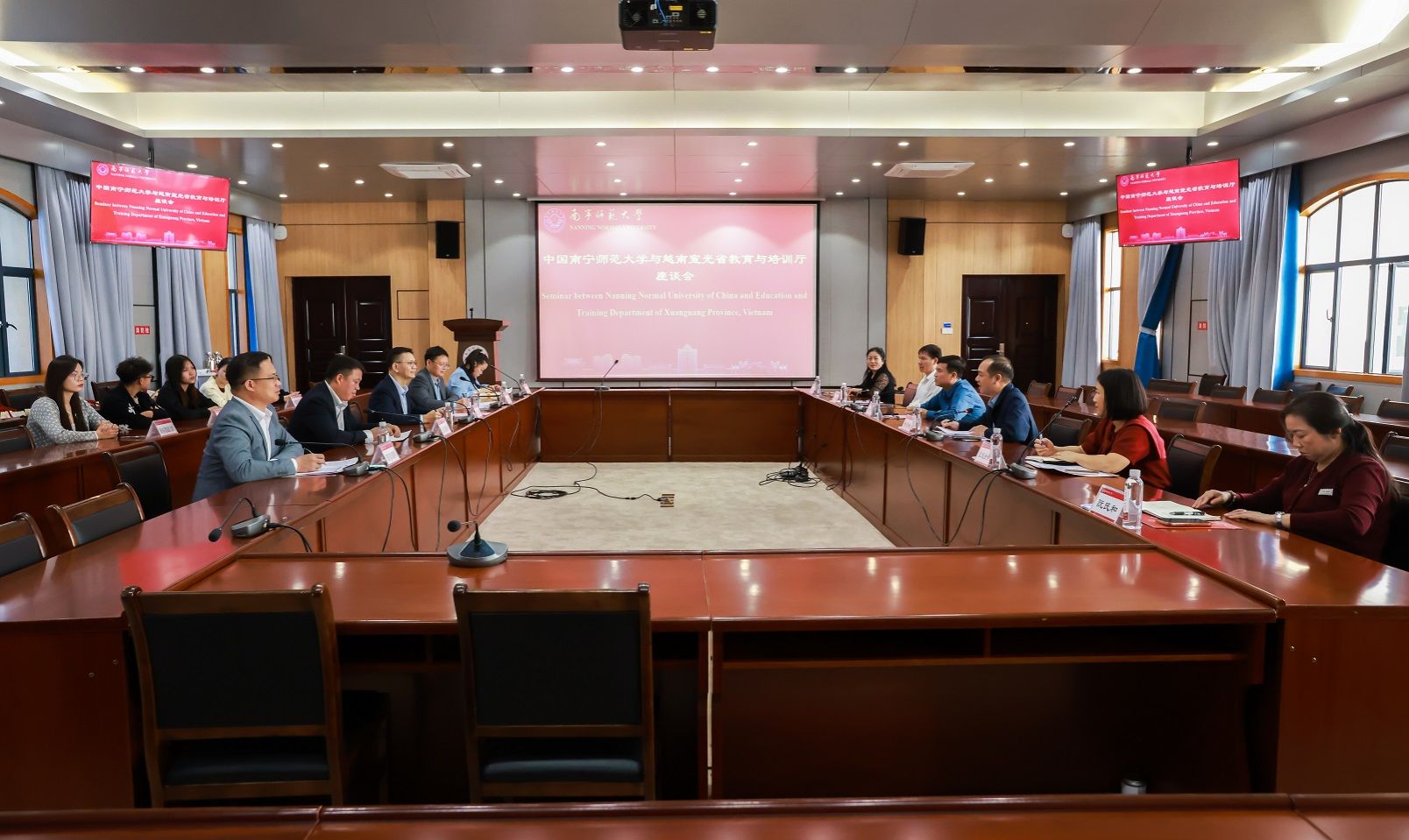 越南宣光省教育与培训厅副厅长林世雄对我校的热情接待表示感谢,并对我校录取宣光省奖学金生表示衷心感谢。他希望双方能在教育领域开展更加广泛深入的合作,进一步加强双方在教师交流、学生留学、学术科研等领域的合作,实现共赢。他还特别表扬了我校在越南的中国奖学金生的优秀表现。随后,越南宣光省教育与培训厅代表团看望了我校越南宣光省籍的留学生并举行座谈。