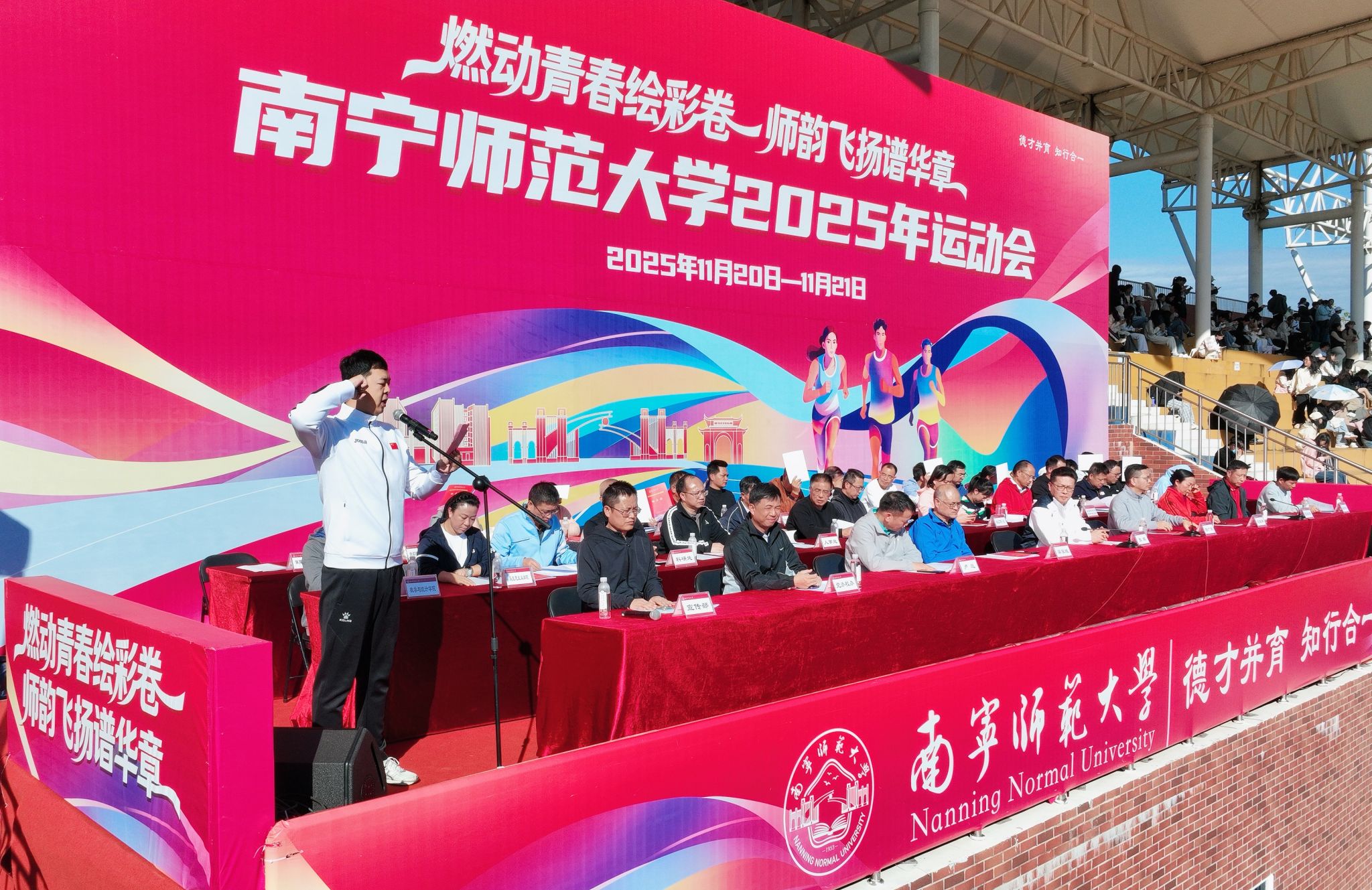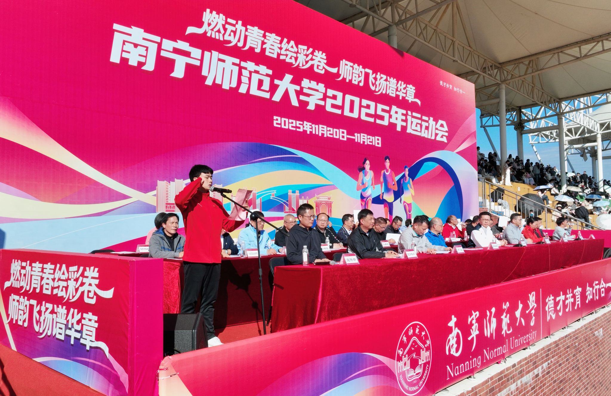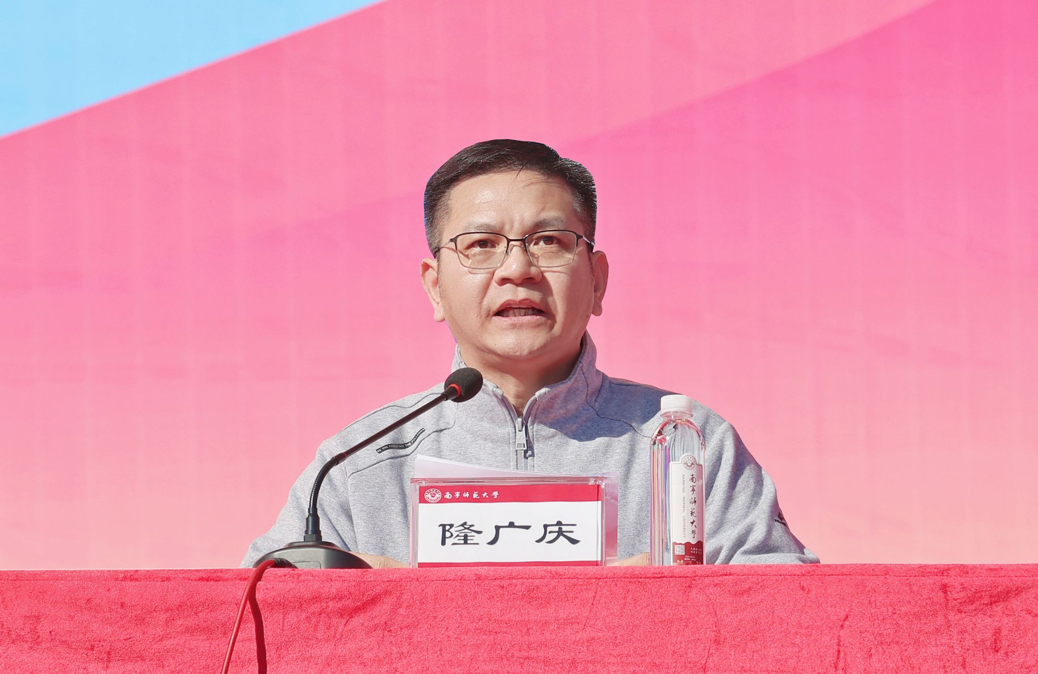 校长隆广庆致开幕词。他代表学校向全体运动员、裁判员和工作人员致以诚挚的问候,向承办本次运动会的体育与健康学院及相关单位表示衷心的感谢。他指出,作为教育部高水平运动队建设高校,学校始终将体育摆在重要位置。本次运动会,既是展现师生风采的新舞台、检验学校育人成果的重要窗口,也是深化体教融合的新起点、落实“五育并举”的新实践。他希望全体运动员遵守规则、尊重对手、尊重裁判,勇于挑战、赛出风格;希望裁判员和工作人员恪尽职守、公正裁决、热情服务;希望各单位密切协作、精心组织,共同把运动会办出水平、办出特色、办成品牌。他号召全体师生在“更快、更高、更强——更团结”的奥林匹克格言激励下,以中国共产党南宁师范大学第一次党员代表大会确立的目标为引领,团结一心、实干担当,共同谱写南宁师范大学高质量发展新篇章。