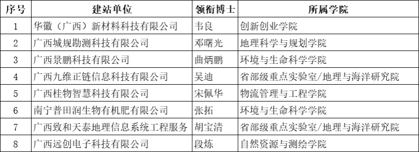根据《自治区科协 自治区党委统战部 自治区工商联关于开展2025年广西壮族自治区博士创新站建设申报认定工作的通知》有关要求,经自主申报、形式审查、专家评审、公告公示等程序,我校8个合作共建博士创新站获批2025年广西壮族自治区博士创新站。