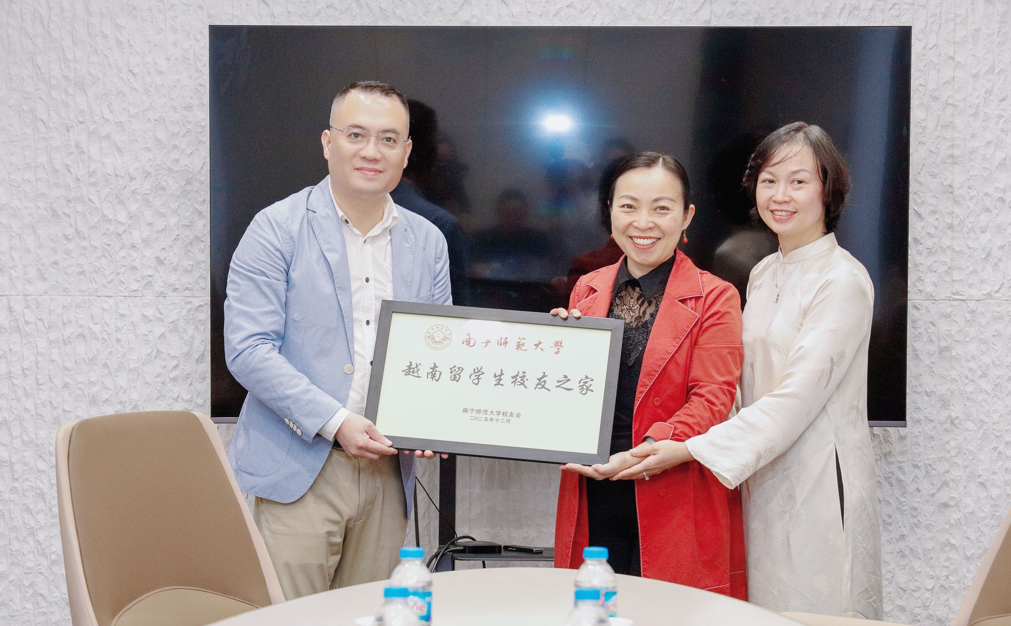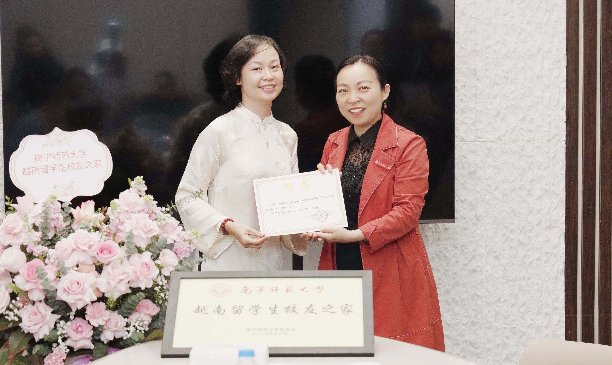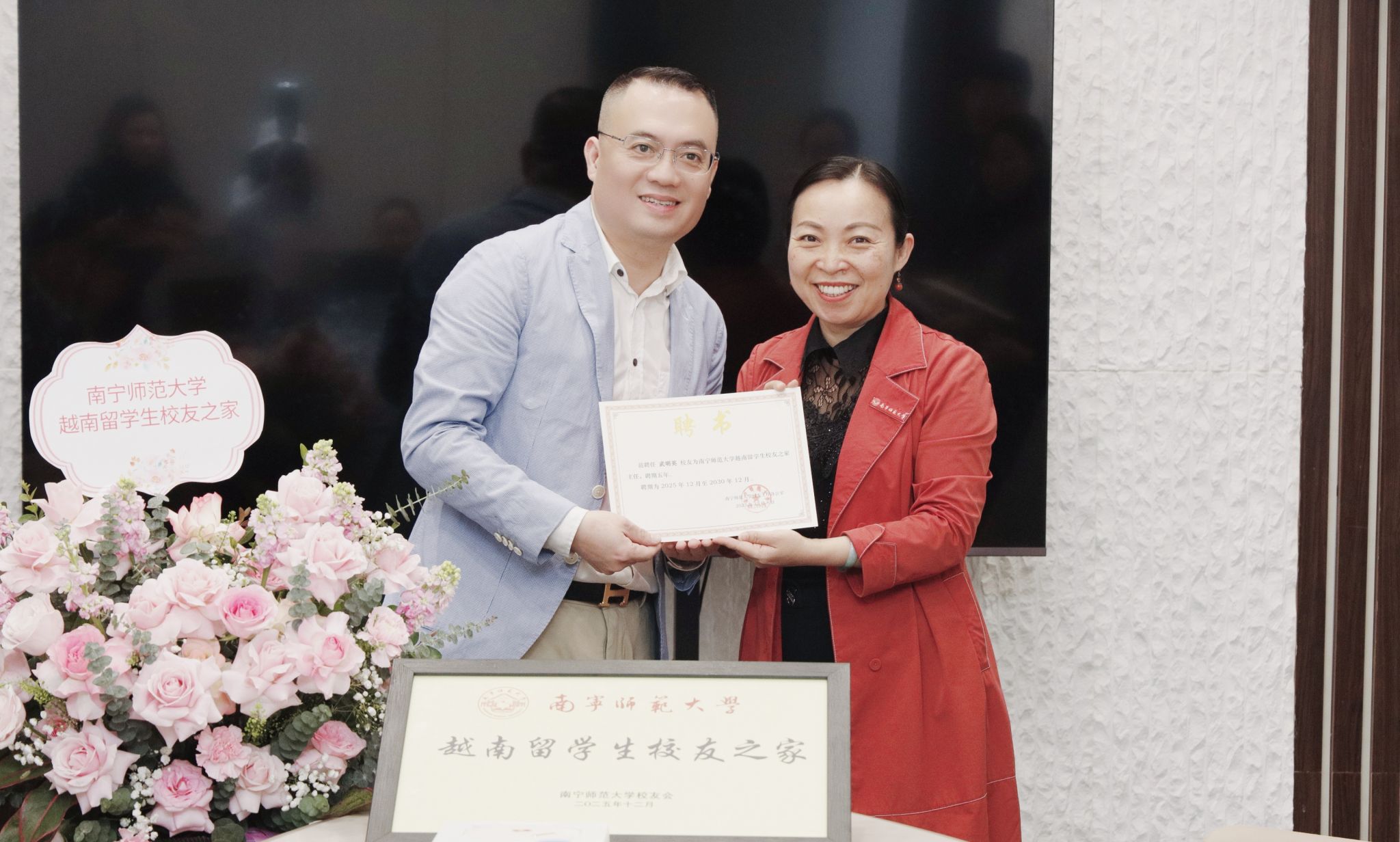 仪式上宣读了关于成立“越南留学生校友之家”的决定,举行了南宁师范大学越南留学生校友之家授牌与聘书颁发仪式,旨在凝聚海外广大校友力量,搭建合作桥梁,进一步深化中越两国在教育领域的交流与合作。