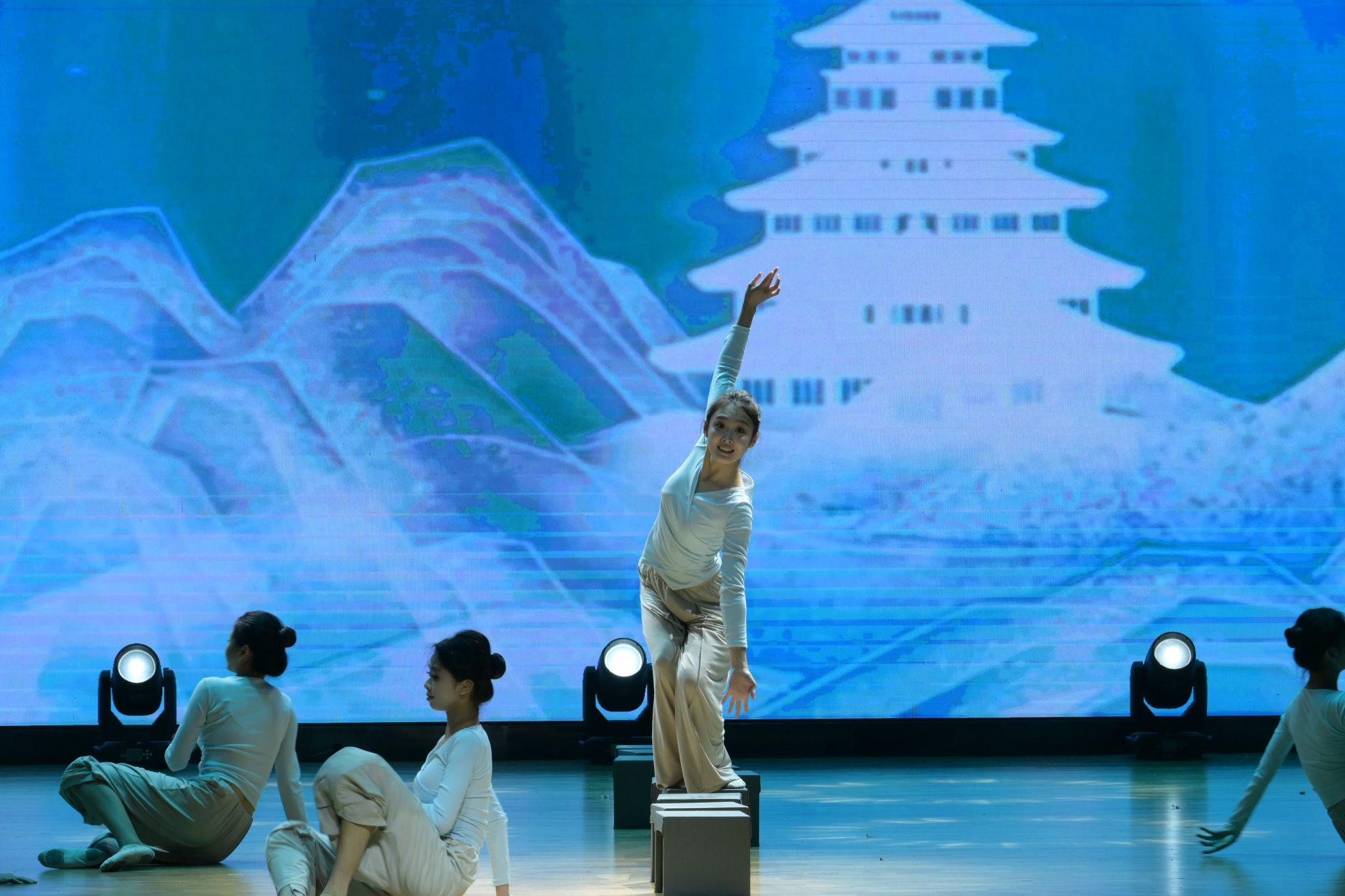 第二篇章集中展现社团风采与青春活力。学校各级学生社团轮番登场,带来了活力四射的啦啦操、铿锵有力的朗诵、余音绕梁的歌曲串烧、尽显江南韵味的古典舞走秀、动感十足的街舞表演、演绎热血岁月的话剧、热闹非凡的狮腾舞跃等丰富多彩的节目,生动诠释了青年学子如火的炽热青春,充分彰显了社团的活力与风采。期间,校团委数字吉祥“犇犇”频频与现场观众互动,缤纷的气球雨、满载心愿的纸飞机更是将氛围推向高潮。活动在全体人员齐声高唱《我和我的祖国》的激昂旋律中圆满落幕。