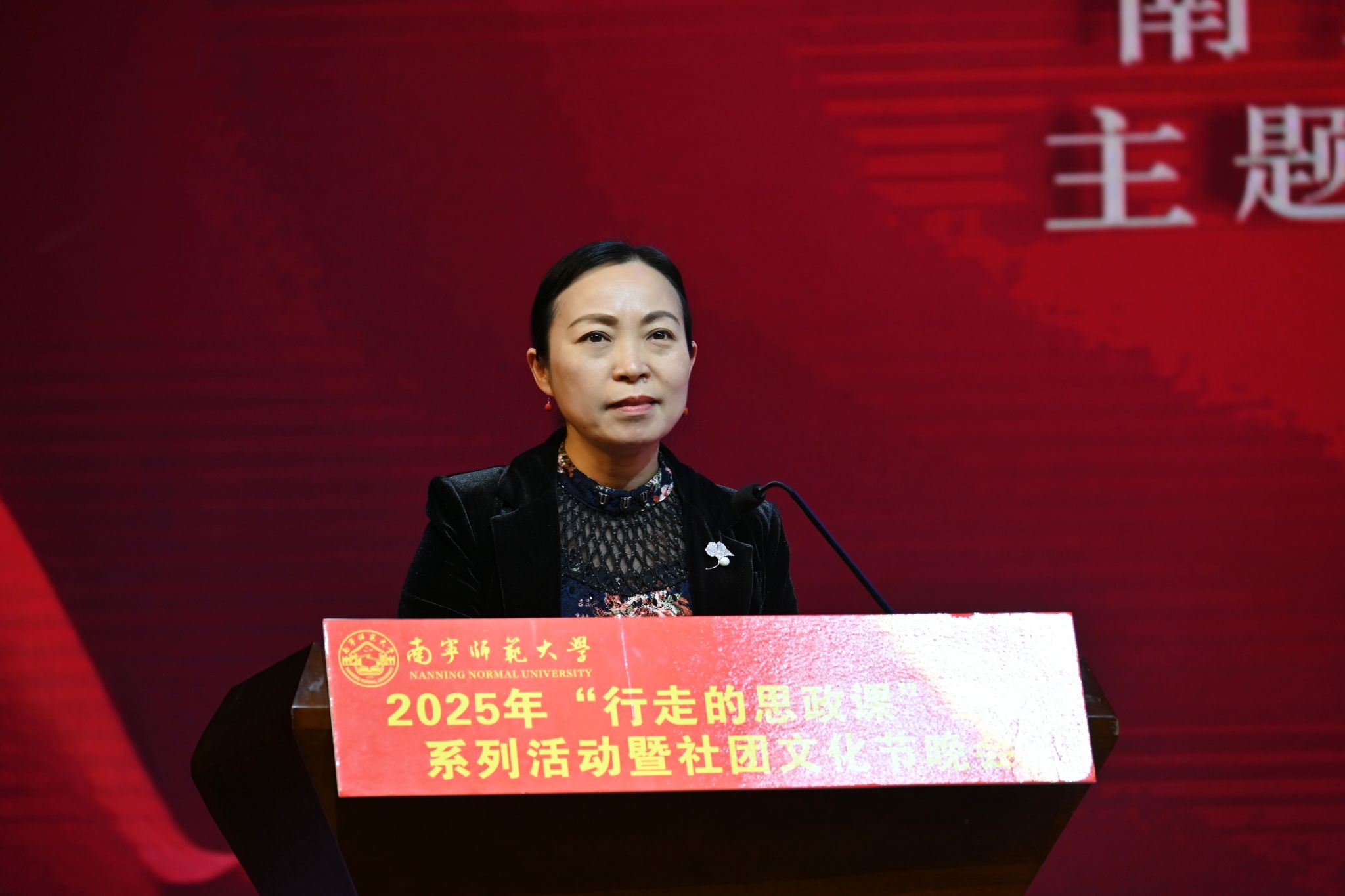 12月23日,我校在武鸣校区1号报告厅举办2025年“行走的思政课”主题系列活动暨社团文化节晚会。学校副校长龙妮娜,党办校办、党委宣传部、党委学生工作部、校团委、党委研究生工作部等部门负责人,学院团委书记代表及1200余名团员青年共赴这场思政铸魂、青春飞扬的盛会。