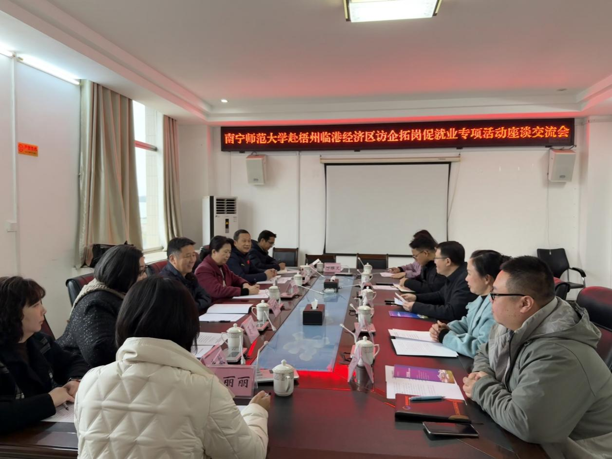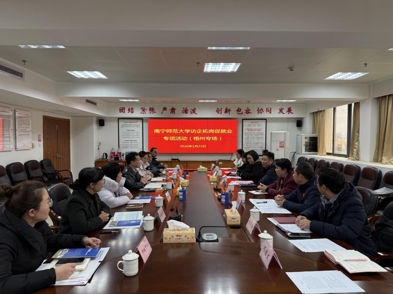 为深入贯彻党中央、国务院关于高校毕业生就业工作的决策部署,落实教育部“书记校长访企拓岗促就业”专项行动要求,1月23日,学校党委常委、副校长张松涛率法学与社会学院、新闻与传播学院、体育与健康学院等学院相关负责人及教师代表一行8人,赴梧州市开展人才培养与访企拓岗专题调研。调研组先后走访梧州临港经济区多家企业、管委会及梧州市教育局,看望慰问优秀校友,围绕深化校地校企合作、精准对接人才需求、拓宽就业渠道、加强校友联动等内容展开深入交流。