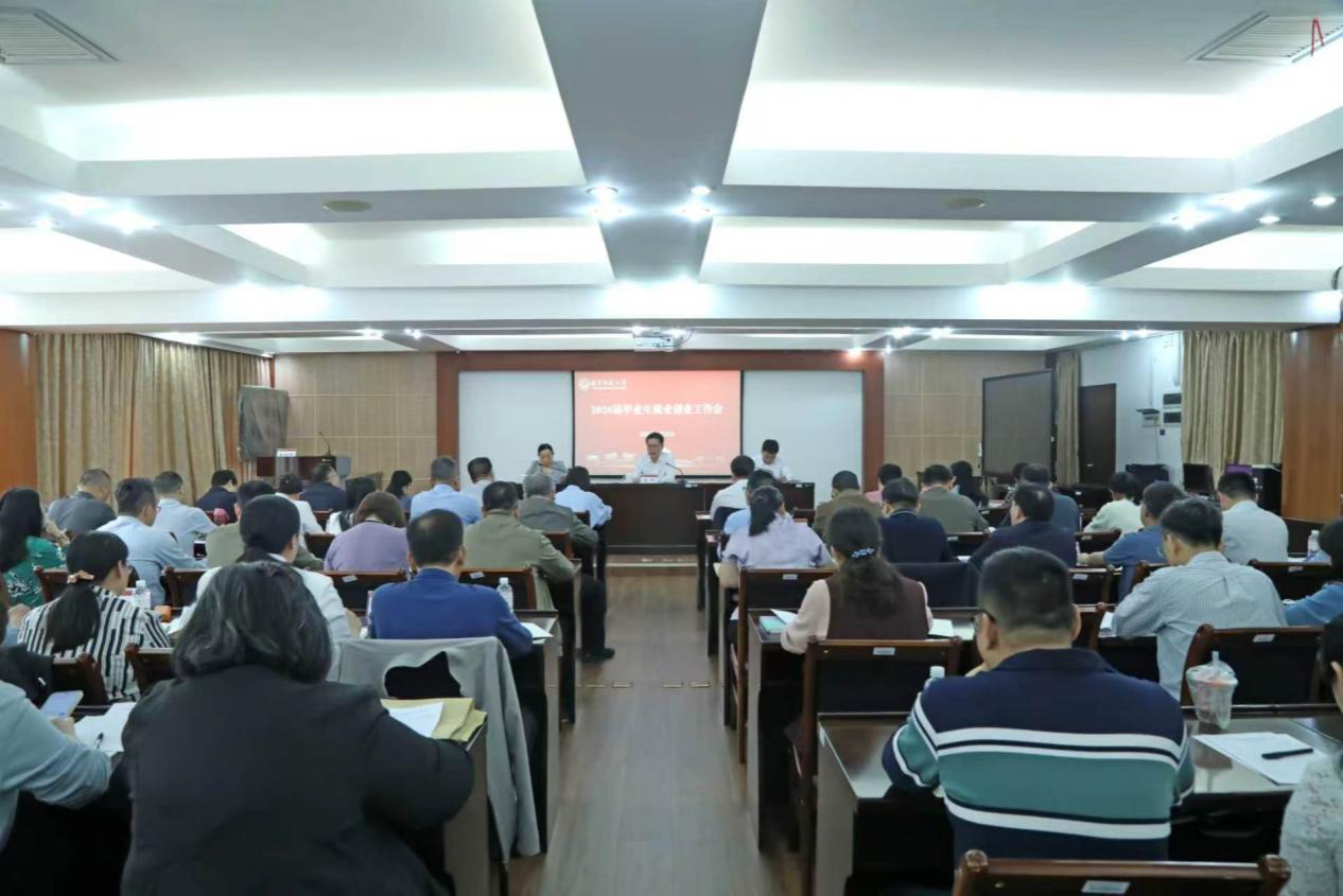 会上,张鹏强调,就业工作是学校必须扛起的政治责任,是关乎千家万户的民生底线,也是检验办学质量的核心标尺,必须摆在更加突出的位置。他指出,要把握战略机遇,推动就业工作与人才培养深度融合,与学科专业建设、人才培养改革同向同行。要以就业需求倒逼学科专业优化调整,以市场导向重塑人才培养模式,积极吸纳行业企业深度参与人才培养全过程;以协同联动构建全员促就业格局,形成“人人关心就业、人人参与就业”的浓厚氛围。他要求,各学院要压紧压实“一把手”责任,将就业工作作为学院生存发展的“生命线”来抓,严格落实全过程管理;做实精准帮扶,落实“一生一策”和“一对一”责任制,确保重点群体毕业生得到有效帮扶。