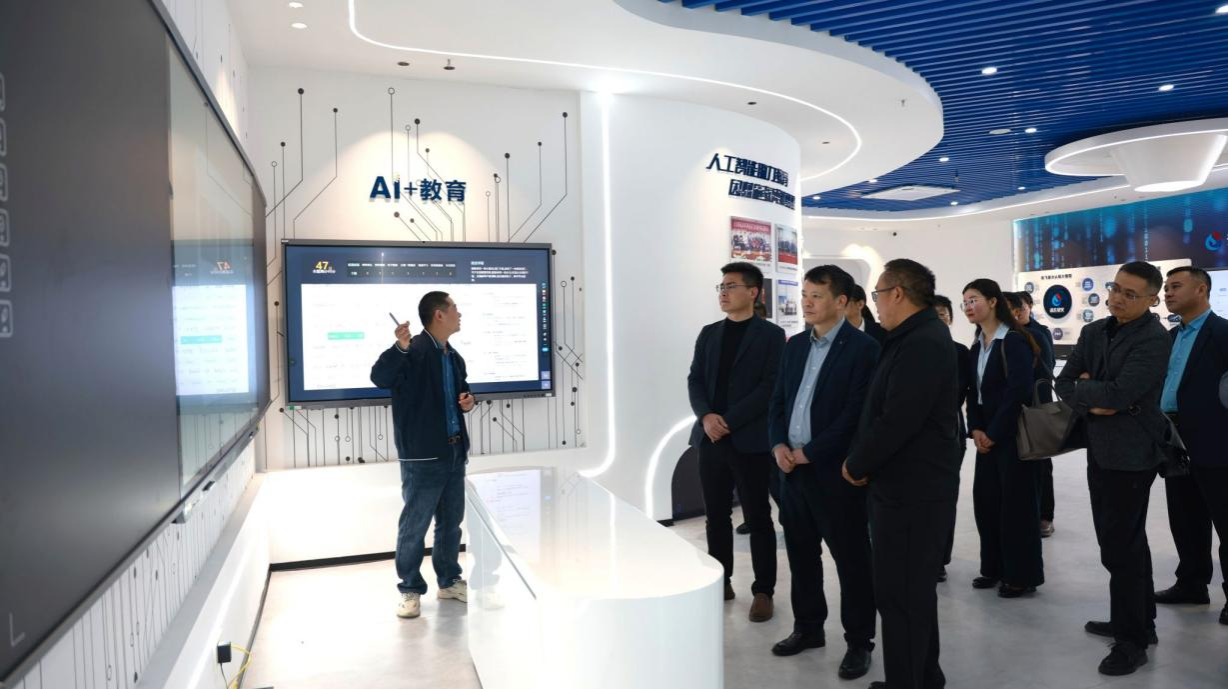 会前,调研组一行参观了遵义师范学院“一带一路”黔货出海贵州遵义跨境电商人才培训基地和科大讯飞人工智能现代产业学院实践创新基地,详细了解了遵义师范学院在跨境电商基地运营和人才培养、校企合作育人等方面的创新实践。
