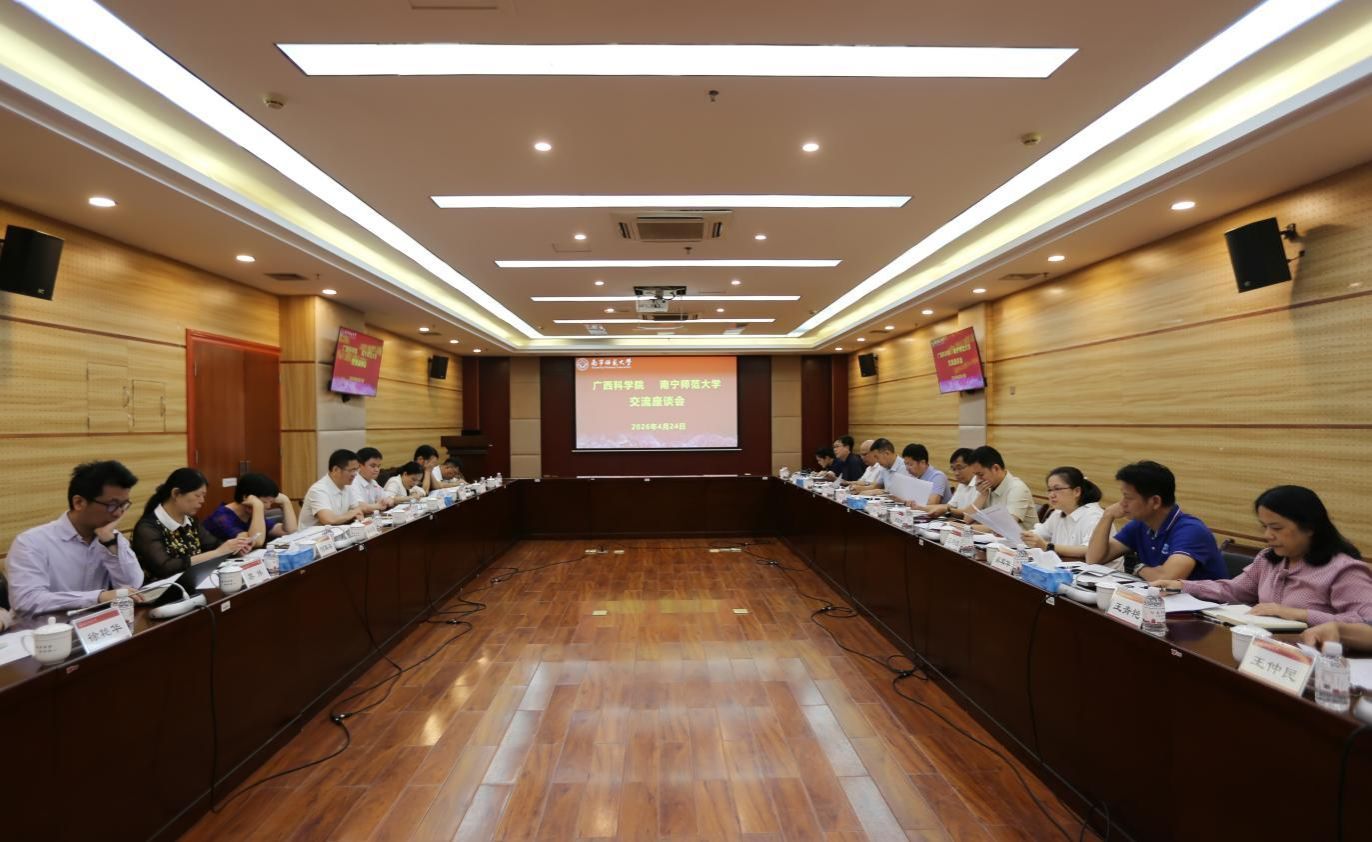 4月24日上午,广西科学院党组书记、院长李典鹏率队到我校考察交流。双方在图书馆二楼会议室召开座谈会,围绕深化科研平台共建、重大项目攻关及研究生联合培养等进行深入探讨。学校校长隆广庆、副校长肖琦及相关职能部门、教学科研单位负责人参加座谈。座谈会由肖琦主持。