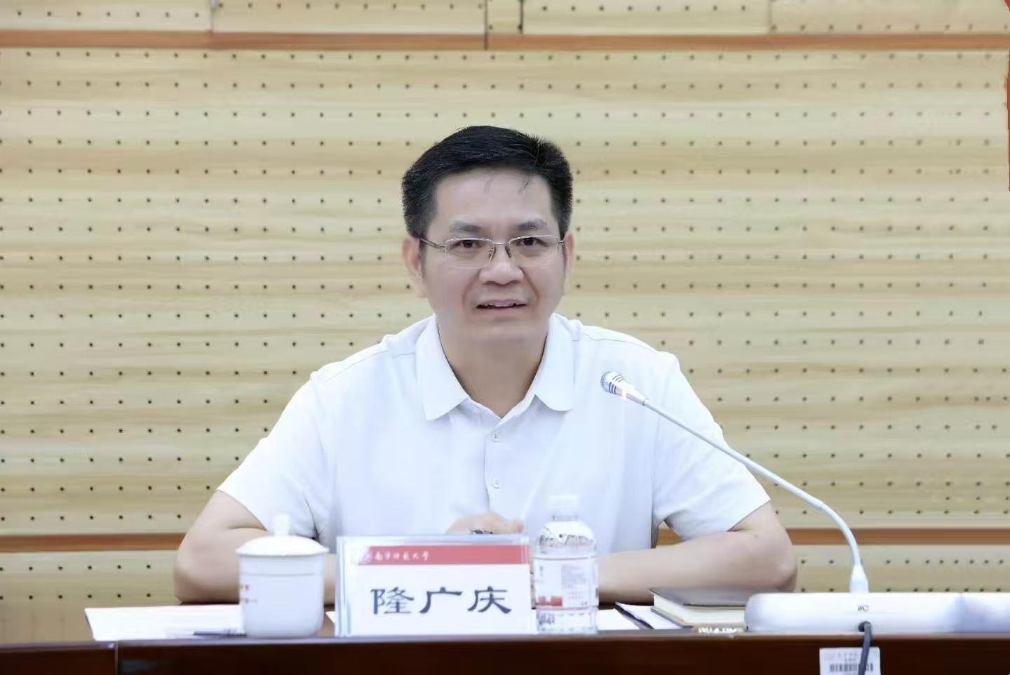 隆广庆代表学校对李典鹏书记一行的到来表示热烈欢迎,介绍了我校的发展概况。他表示,南宁师范大学与广西科学院长期保持着密切的合作关系,共建的“广西人机交互与智能决策重点实验室”已成为双方协同创新的重要平台。面向未来,希望双方进一步拓展合作领域,在人工智能、海洋科学、生态环保、新材料等重点方向加强平台共建、资源共享与人才共育,共同服务广西经济社会发展。