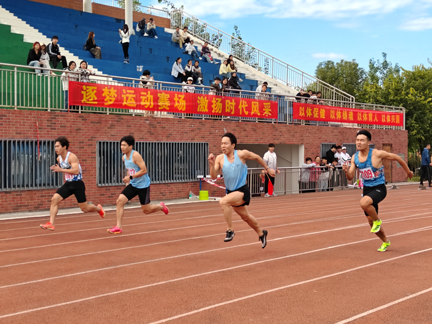 40名来自各学院的参赛选手分为5组同台竞技,赛前,各组选手已在起跑线就位,反复调整起跑姿势,随着发令枪接连脆响,5组选手依次奋勇出击。现场观众的热情被彻底点燃,加油呐喊声此起彼伏、响彻全场,与选手们的脚步声、呼吸声交织在一起,将紧张热烈的竞技氛围推向顶峰。