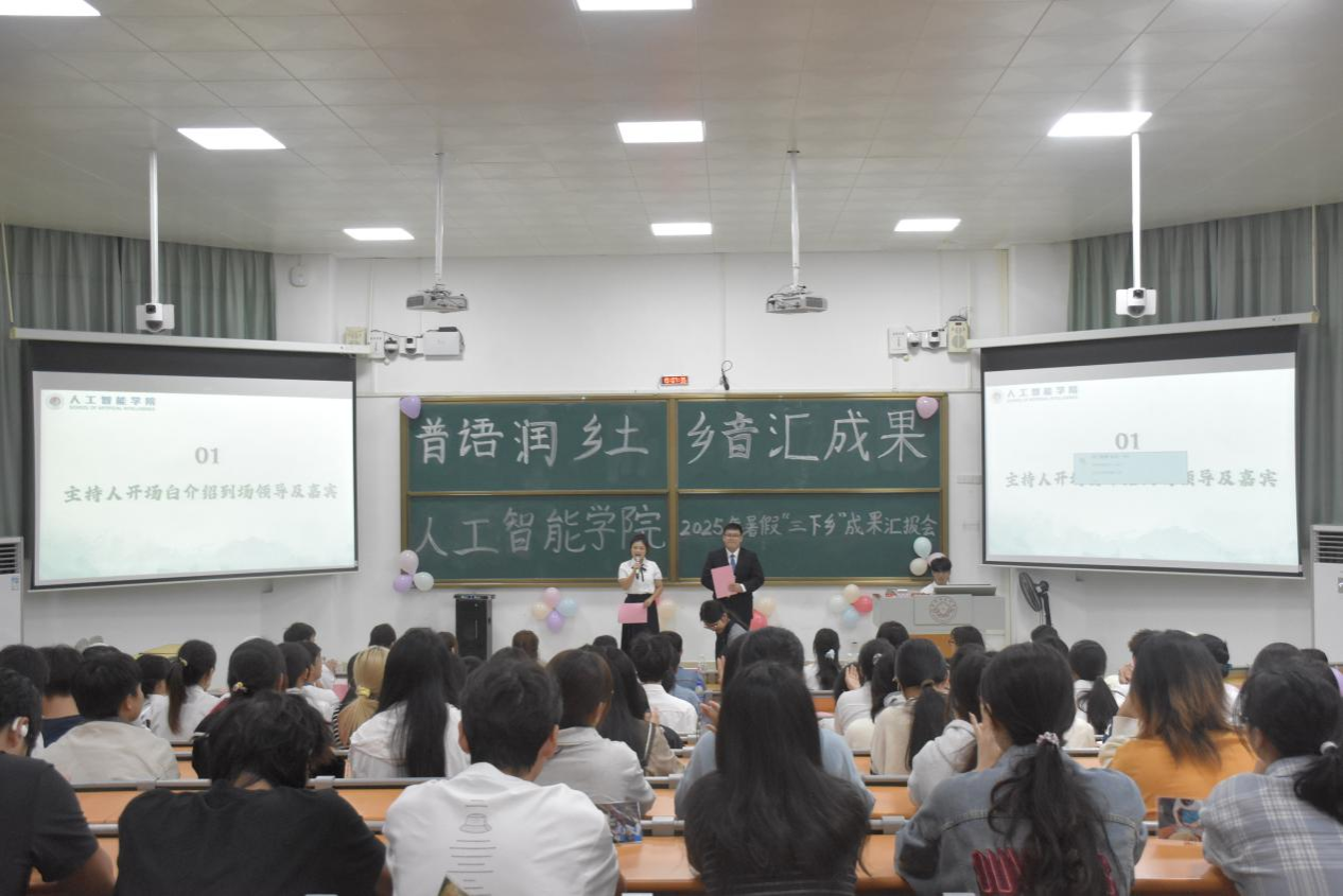 10月21日,人工智能学院在武一215教室成功举办“普语润乡土,乡音汇成果”2025年暑期“三下乡”社会实践活动成果汇报会。学院辅导员、兄弟学院代表、“声鹭飞扬”推普实践团队、2024级与2025级班级代表参加会议。