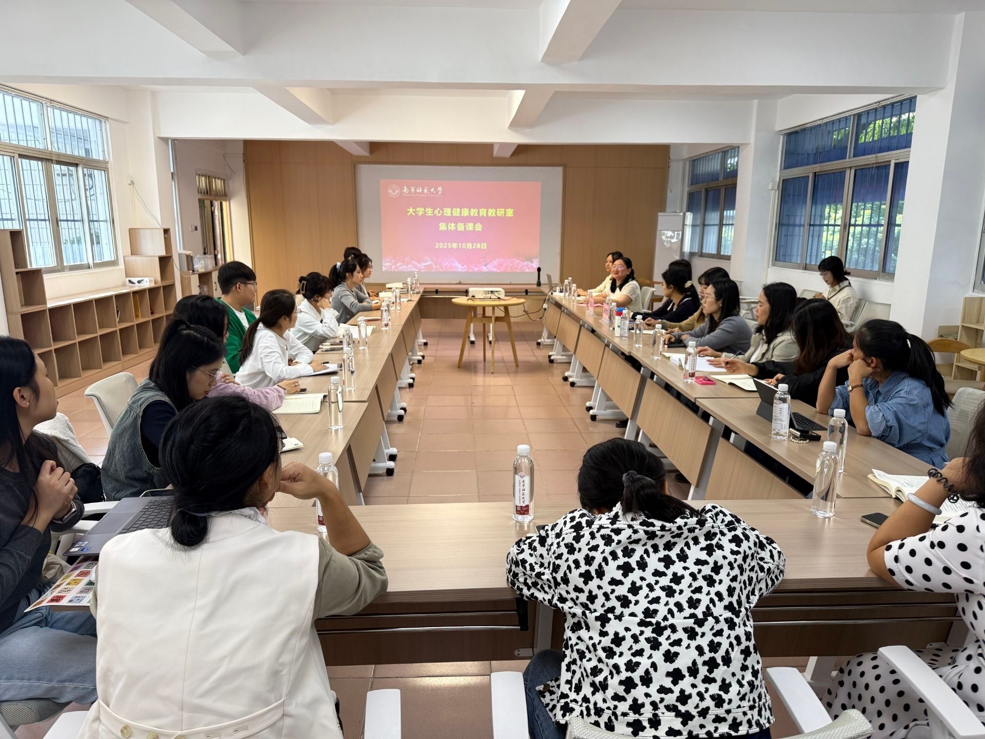 为做好大学生心理健康教育工作,提升教学效果,并促进教师间的经验分享,我校大学生心理健康教育教研室于10月28日在明秀校区工会楼203室召开秋季学期集体备课会。本次集体备课会旨在通过校际间的交流与合作,借鉴兄弟院校的先进教学理念与成功经验,丰富我校心理健康教育的教学手段与内涵,为教师们提供一个相互学习、共同进步的平台。