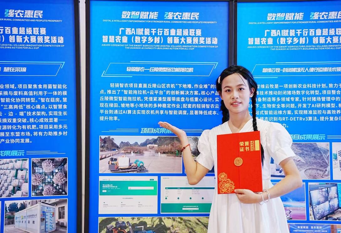 11月5日,由广西壮族自治区农业农村厅、自治区党委网信办主办的“数智赋能、强农惠民”AI赋能千行百业超级联赛智慧农业(数字乡村)创赛大赛颁奖典礼在南宁市国际会展中心隆重举行,国际教育学院入围总决赛的项目团队斩获三等奖,展现了我校在创新性、跨学科性与国际化的育人成效。
