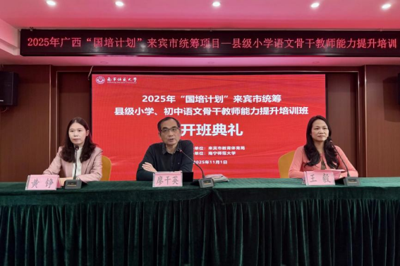 近日,南宁师范大学承办的2025年“国培计划”来宾市统筹培训项目——县级初中语文骨干教师能力提升培训班圆满落幕。本次培训为期8天,汇聚来宾市66名县级初中语文教师,通过专题授课、基地研修、实践交流等多元形式,助力教师提升专业素养与教学实践能力。