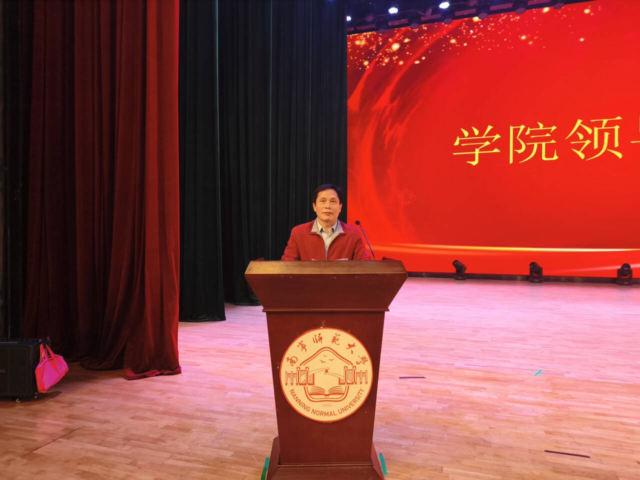 学院党委书记余敢才发表寄语。他以学校“德才并育,知行合一”校训为切入点,肯定了获奖集体与个人的优异表现,同时勉励全体数统学子以榜样为镜、以先进为尺,既要扎实掌握专业知识、锤炼过硬本领,也要坚守初心使命、涵养品德修为,在学习中求真知,在实践中长才干,以青春之姿在成长道路上不断攀越新高,为学院发展、学校建设贡献青春力量。