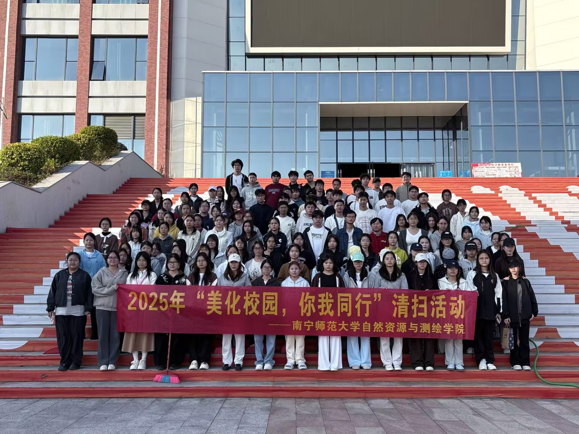 为营造整洁优美的校园环境,弘扬志愿服务精神,11月29日,自然资源与测绘学院团委实践部组织开展“美化校园,你我同行”第二次集中除草、卫生打扫活动,对校园公共区域进行全方位清洁整治。