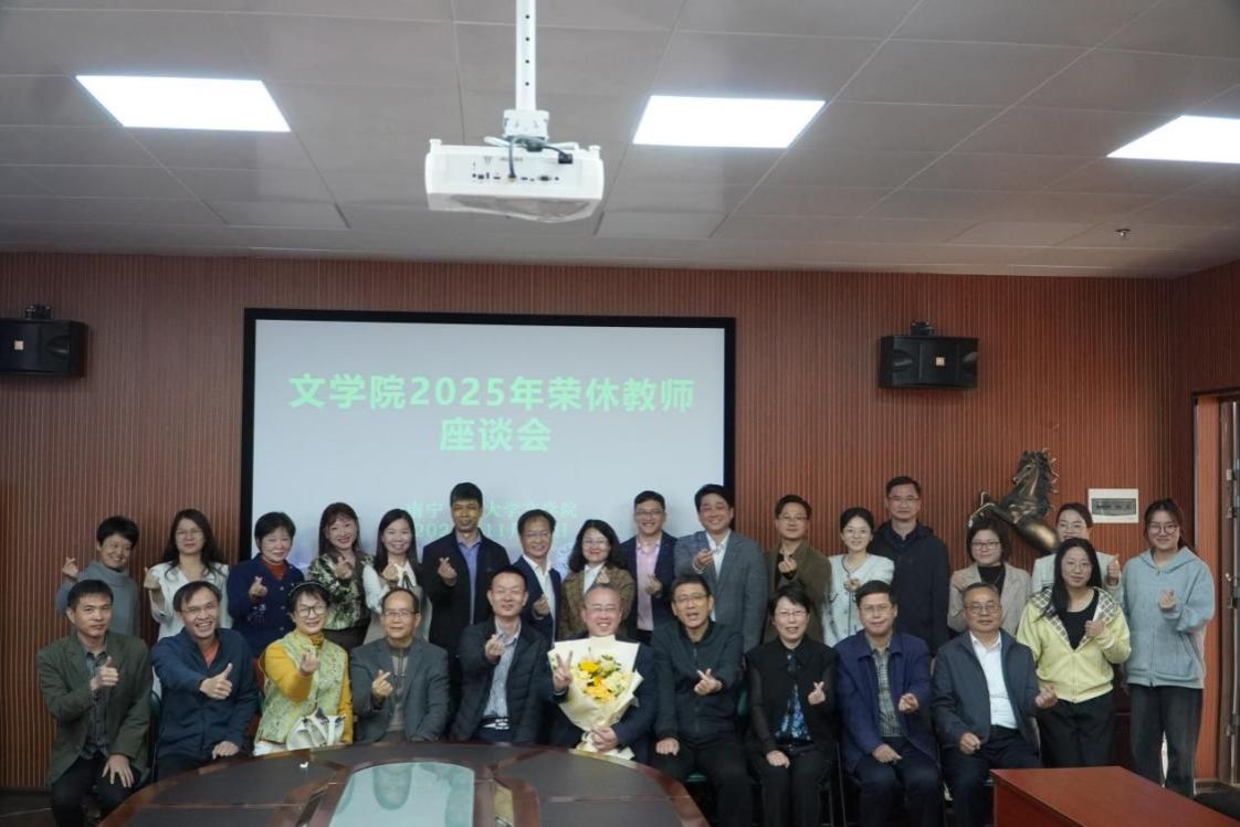 11月28日上午,在理科综合楼404文学院会议室举行宾恩海教授荣休座谈会,文学院党委书记石勇博士,副院长刘振平教授(主持行政工作),院长助理石艺教授、现当代文学教研室教师代表及文学院在读各班本科学生代表与研究生代表以及来自南宁二中、三中、广西大学附中、南宁八中、南宁三十六中、柳州地区民族高中、广西中医学校、广西壮族自治区教育厅、广西广播电视台、玉林师范学院、广西工商职业技术学院、桂林广文文旅公司、广西城乡国际咨询公司任职的学生代表近一百人参加座谈会。座谈会由文学院党委副书记吴幼坚主持。