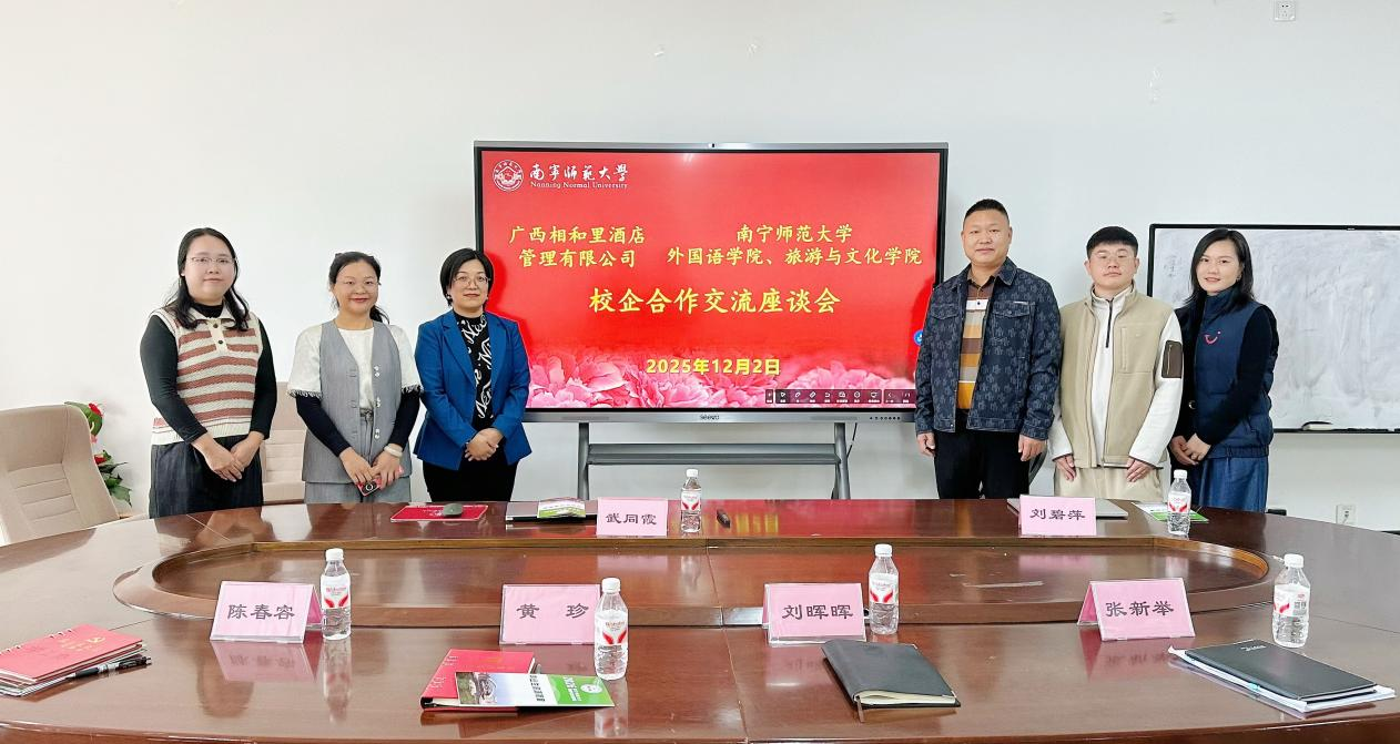 12月2日上午,广西相和里酒店管理有限公司总经理武同霞、总经理助理刘碧萍到访我校外国语学院与旅游与文化学院。外国语学院副书记刘晖晖、旅游与文化学院副书记黄珍及相关学院就业负责人接待,双方重点对接就业实习基地建设及校企深度合作事宜。