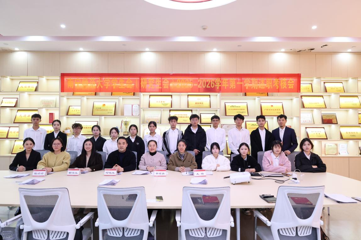 为落实高校学生会(研究生会)深化改革要求,总结阶段性工作成效,切实提升管理与服务水平,12月16日,我校学生会、研究生会在武鸣校区二课体验中心召开2025-2026学年第一学期述职考核会。校团委、党委研究生工作部指导老师以及校学生会、研究生会学生代表参加了本次述职考核会。