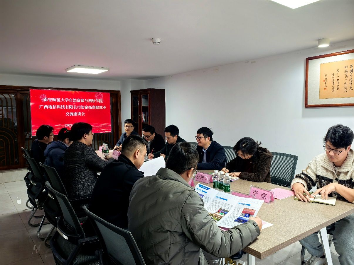 为进一步加强校企合作,拓宽毕业生就业渠道,了解企业人才需求,向企业精准推介毕业生,推动产教研深度融合。2月3日,学院院长陆汝成、党委副书记全广铭(主持党委工作)、党委副书记莫雅兰、房地产开发与管理系主任娄信强、土地资源管理系副主任张利国以及测绘工程系副主任李鹏等一行前往广西地信科技有限公司开展“访企拓岗促就业”调研活动。广西地信科技有限公司总经理李睿华、综合规划部部长李雪君、检测实验室主任黄永和以及技术主干余潮等参加了此次调研座谈。
