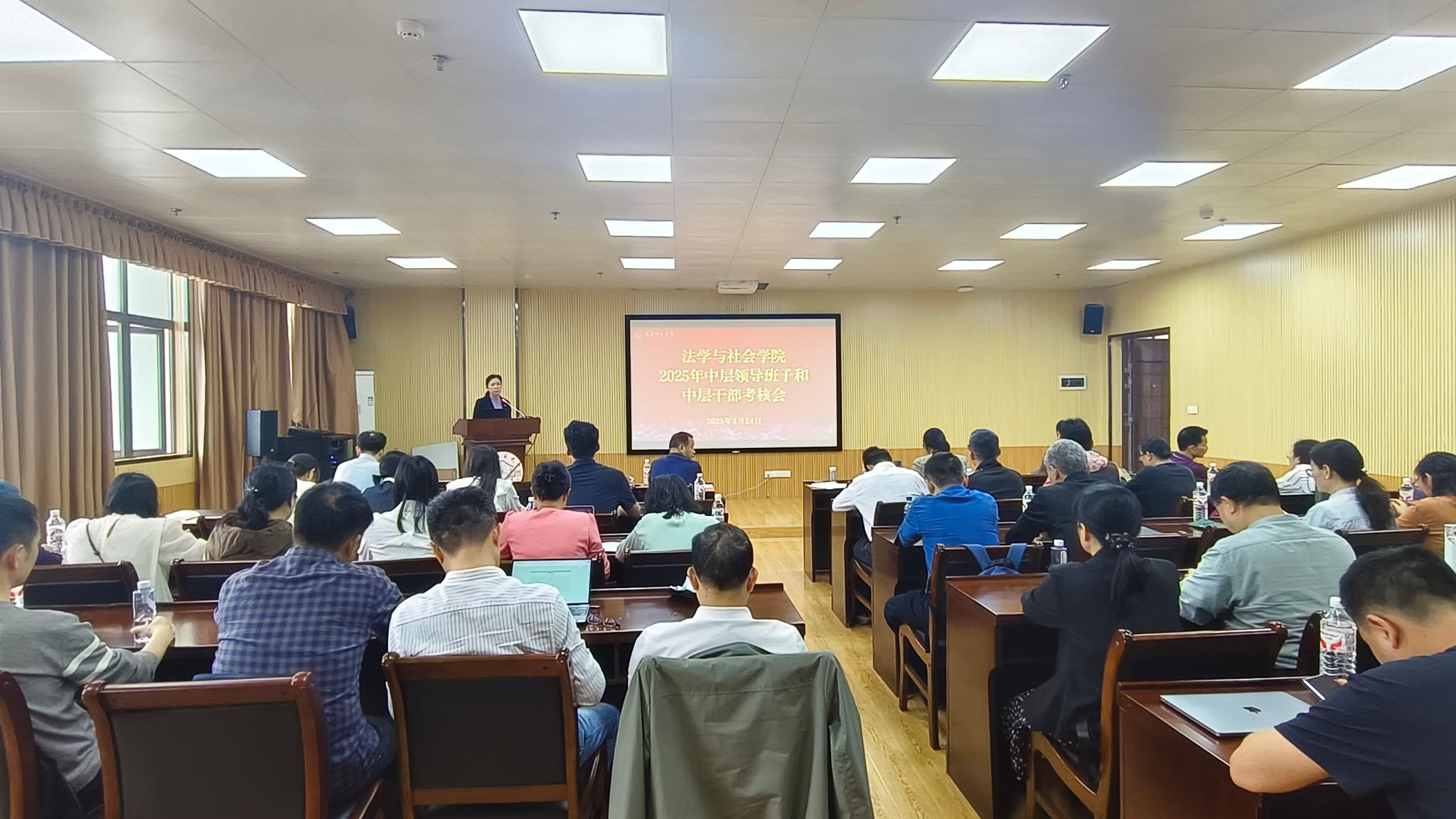 为全面总结年度工作成效,压实新学期工作责任,凝聚全院教职工奋进力量,3月24日下午,法学与社会学院在五合校区理综720会议室召开2026年春季学期第二次全体教职工大会。会议由学院党委书记许建主持,学院领导班子成员、全体任课教师及行政教辅人员参会。