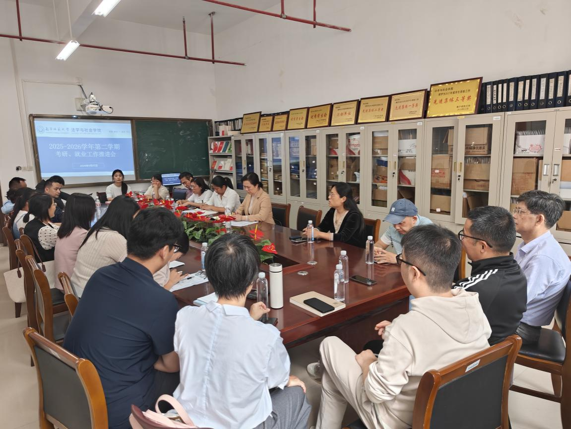为进一步加强班级管理工作,筑牢学生心理健康与安全稳定防线,精准推进就业工作落实,切实提升育人实效,3月31日下午,法学与社会学院在五合校区理综楼604-2会议室召开2026年春季新学期班主任工作会议。学院党委书记许建、副书记张建梅出席会议,辅导员邓雅文、郭祖昌老师和全体班主任参加了会议。会议由张建梅主持。