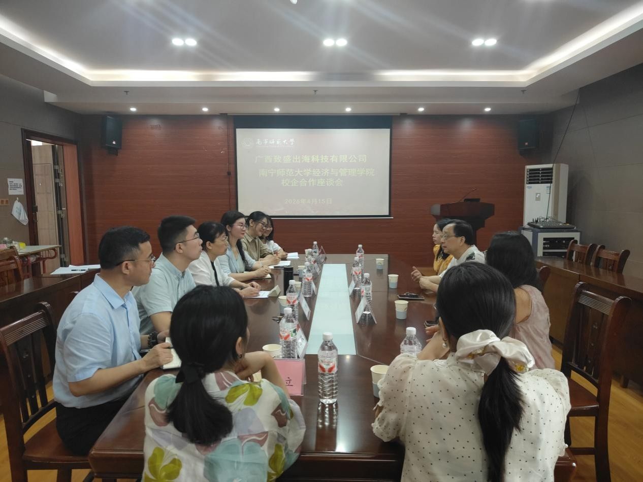 4月15日上午,我校经济与管理学院与广西致盛出海科技有限公司围绕跨境电商实训室建设在五合校区理515会议室开展合作座谈会。广西致盛出海科技有限公司总经理覃继忠及相关业务骨干、学院院长何玲玲、科研处处长助理程皓、学院院长助理闭闲及各系主任、骨干教师参加了会议。座谈会前,双方实地参观了创客社区,考察了实训室场地。