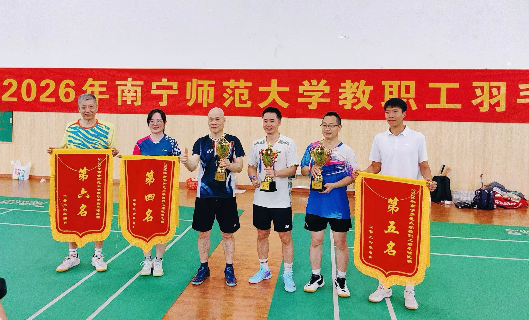 春和景明,活力飞扬。为全面推进健康学校建设,丰富教职工文体生活,增强团队凝聚力与向心力,4月25日至26日,学校2026年教职工羽毛球赛在武鸣校区兰园体育馆圆满举办。来自全校各学院、各职能部门的20余个分工会组成A、B、C、D 四组参赛队伍齐聚赛场。