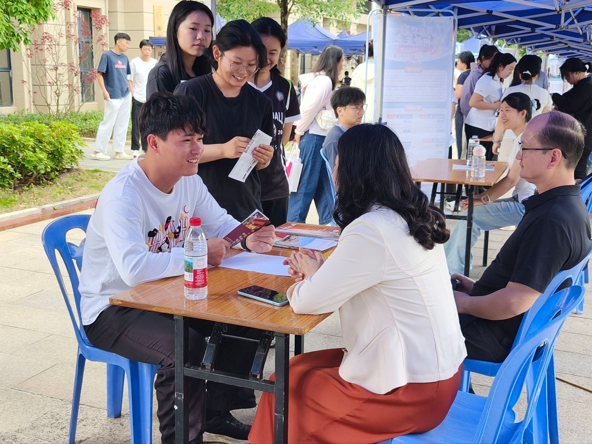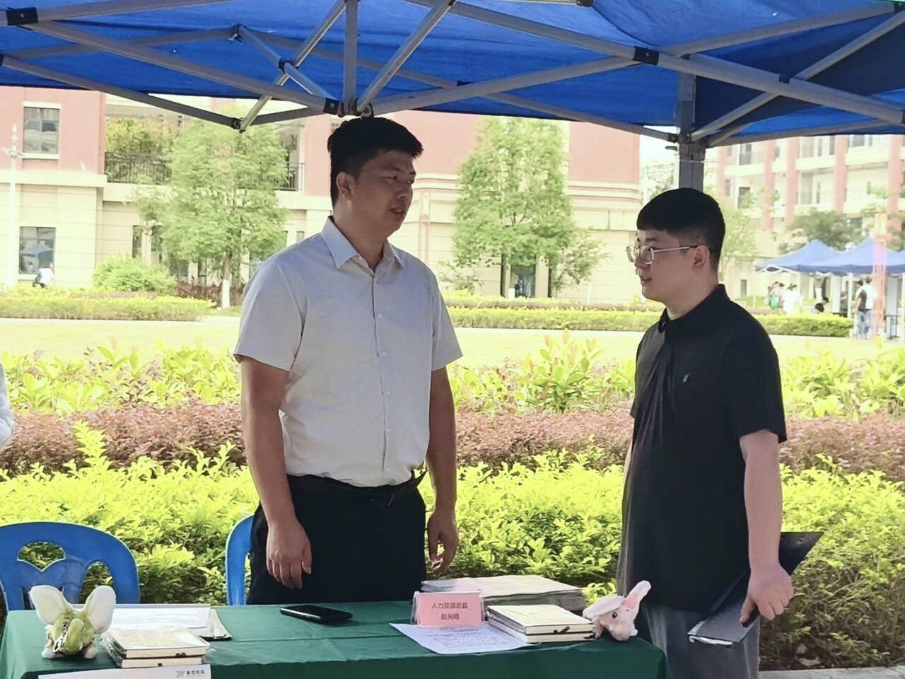 为进一步拓宽毕业生就业渠道,4月27日上午,由外国语学院与体育与健康学院联合主办的“语体同行·职等你来”专场双选会在武鸣校区实验楼1号楼前空地顺利举办。外国语学院党委书记苏华、党委副书记邱晖、学工办各位老师以及来自多个行业的用人单位代表和数名毕业生参加了本次活动。