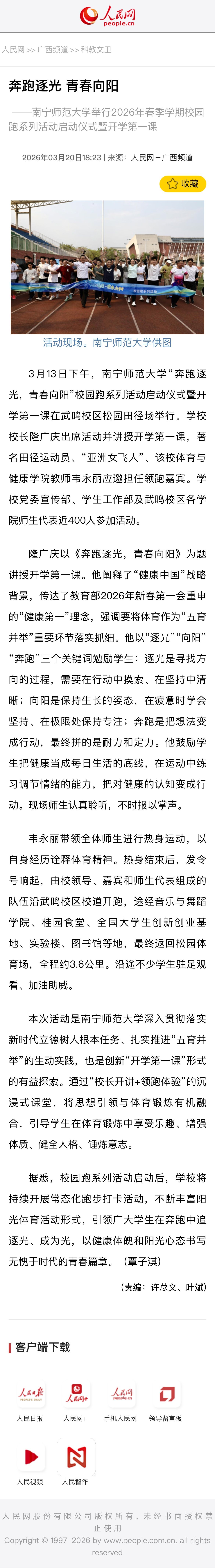 【人民网】南宁师范大学举行2026年春季学期校园跑系列活动启动仪式暨开学第一课