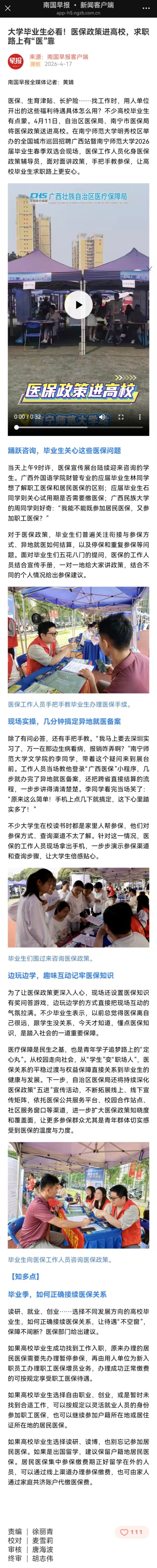 【南国早报客户端】大学毕业生必看!医保政策进高校,求职路上有“医”靠