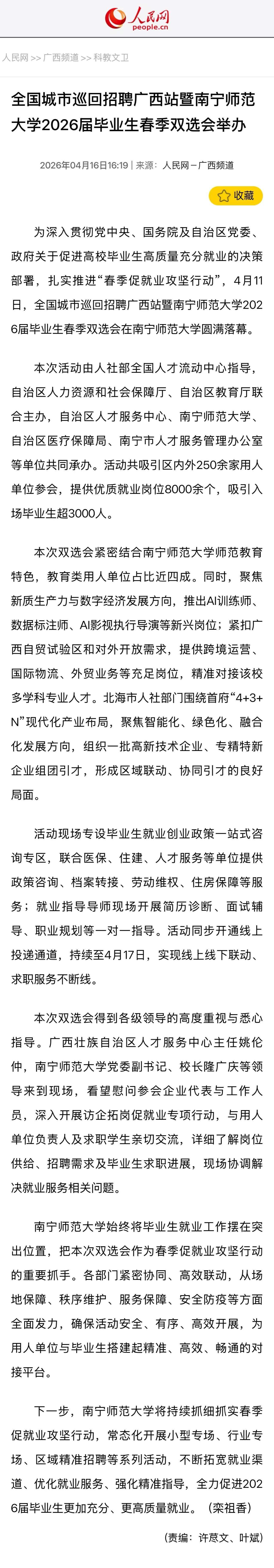 【人民网】全国城市巡回招聘广西站暨南宁师范大学2026届毕业生春季双选会举办