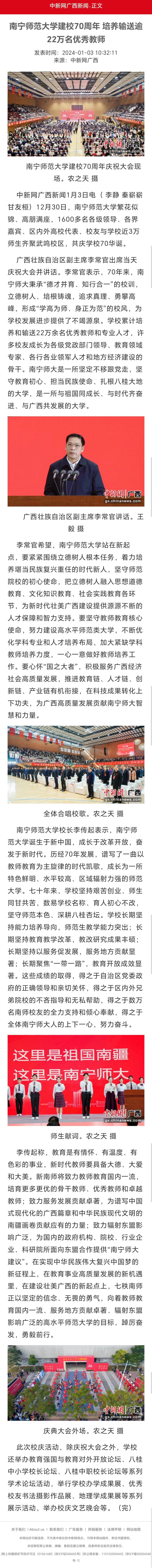 【中国新闻网】:南宁师范大学建校70周年 培养输送逾22万名优秀教师