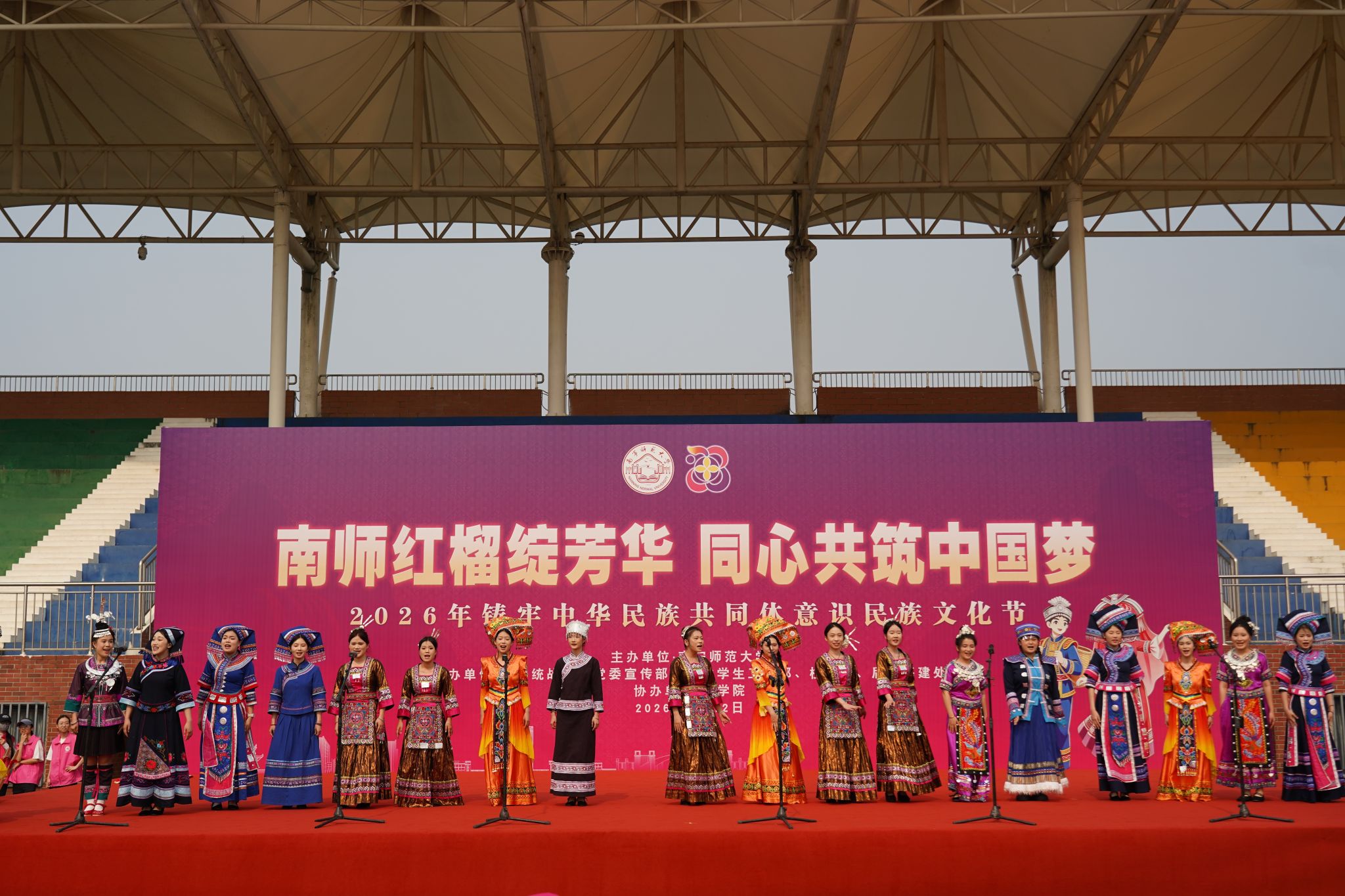 4月12日上午,“南师红榴绽芳华 同心共筑中国梦”2026年铸牢中华民族共同体意识民族文化节在武鸣、五合、明秀三个校区同步启动。自治区民宗委政策法规与理论研究处处长黄金海,学校党委副书记唐荣双出席武鸣校区启动仪式并致辞。本次活动由党委统战部、党委宣传部、党委学生工作部、校团委、后勤基建处联合承办。相关职能部门负责人、各学院党委副书记参加启动仪式,三校区5000多名师生积极参与,共赴这场民族文化的美好之约。